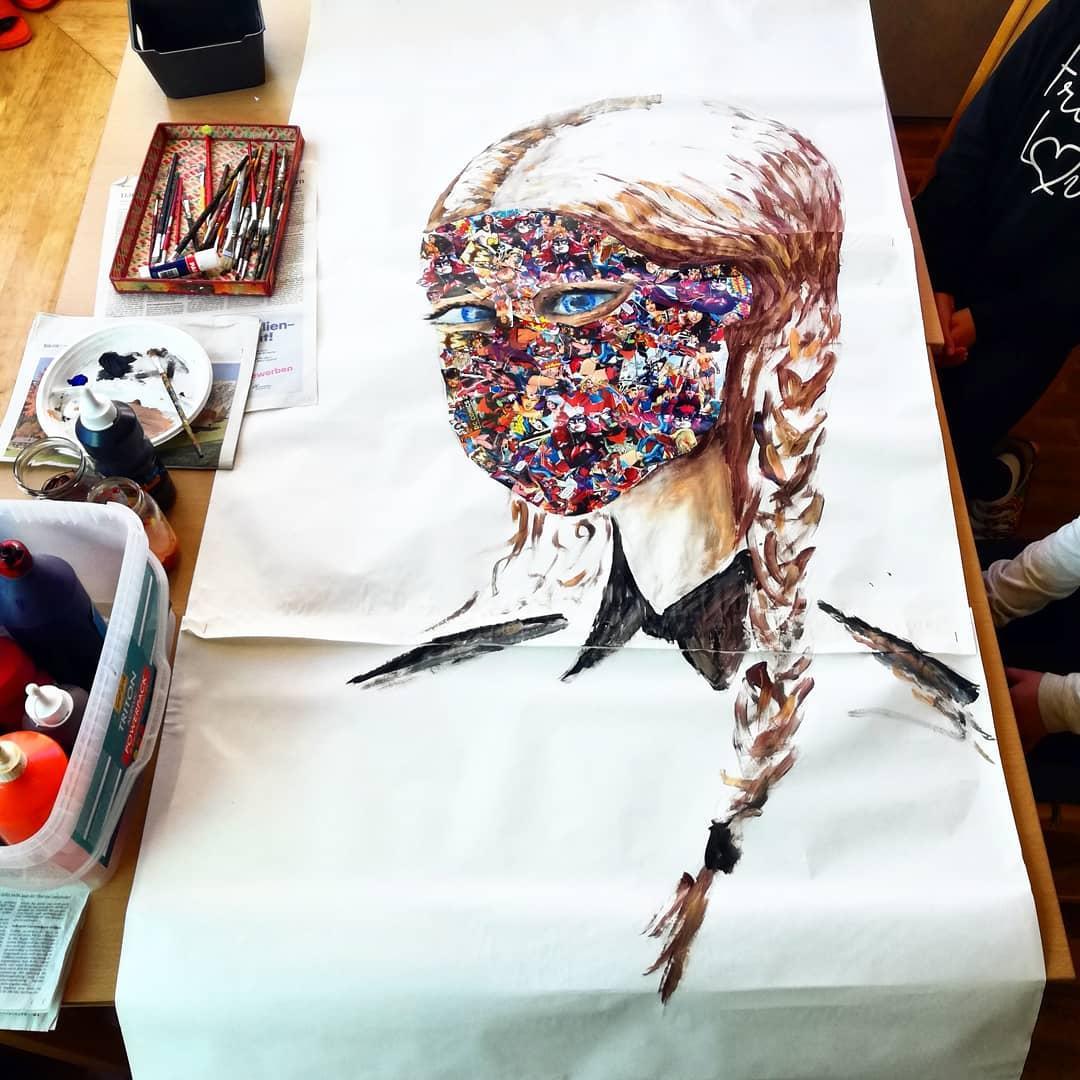 Im Workshop erfinden die Schüler/innen einen neuen Superheld/eine neue Superheldin, geben ihm/ihr neue Eigenschaften. Sie erfinden ein neues Outfit und ein neues Aussehen. Sie entwerfen ihre Superheld/innen grafisch (Zeichnung/Collage). Sie erfinden einen Namen und Wörter oder Redewendungen, die zu ihren Superheld/innen passen.