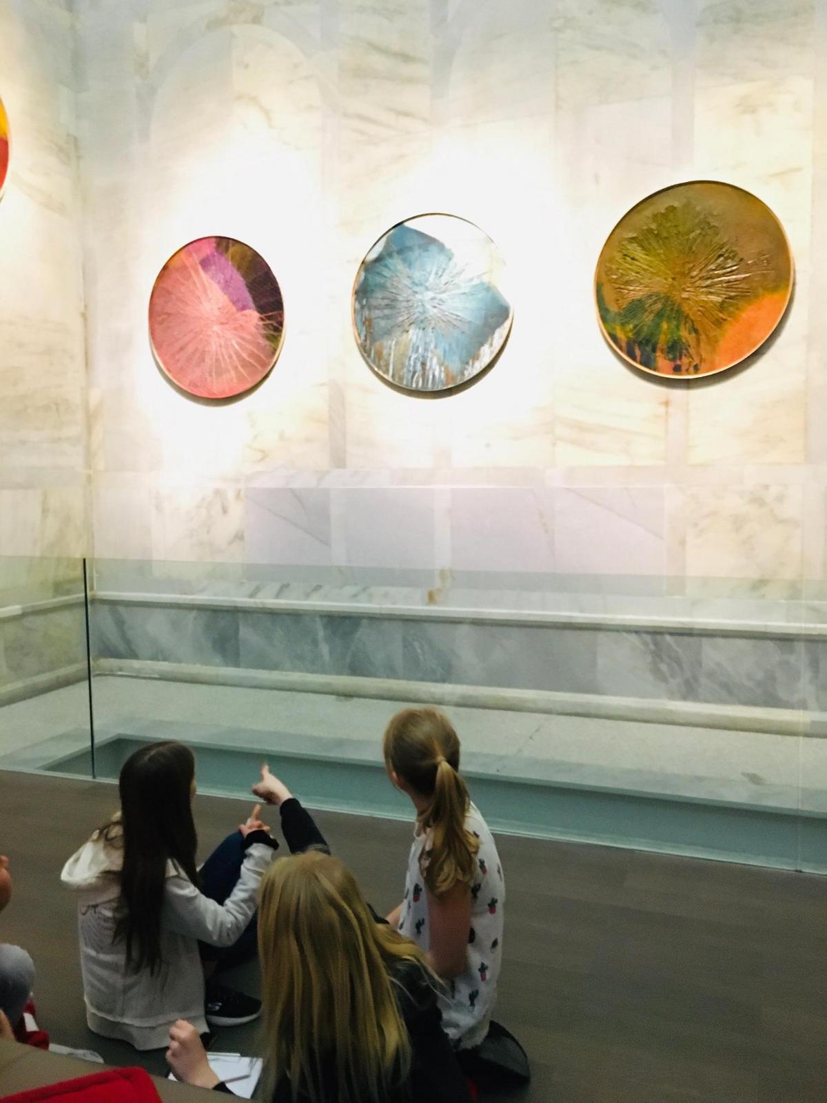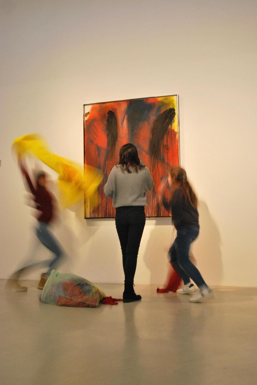 Die 10- bis 18-jährigen Schülerinnen und Schüler des BG & BRG Biondekgasse sowie der Musikschule Baden spüren in der Ausstellung „Arnulf Rainer/REVUE“ den Malbewegungen des Künstlers Arnulf Rainer nach – mit Musik, Performances und eigenen Kunstwerken.