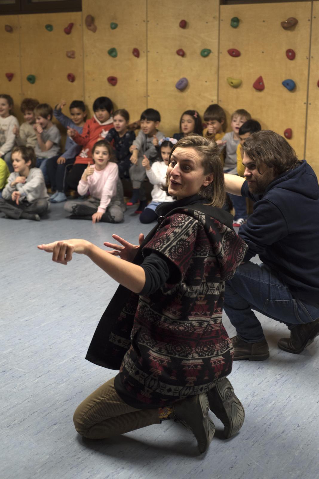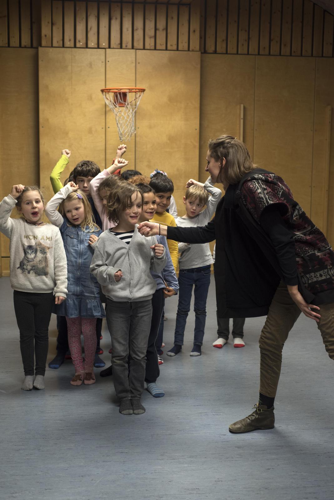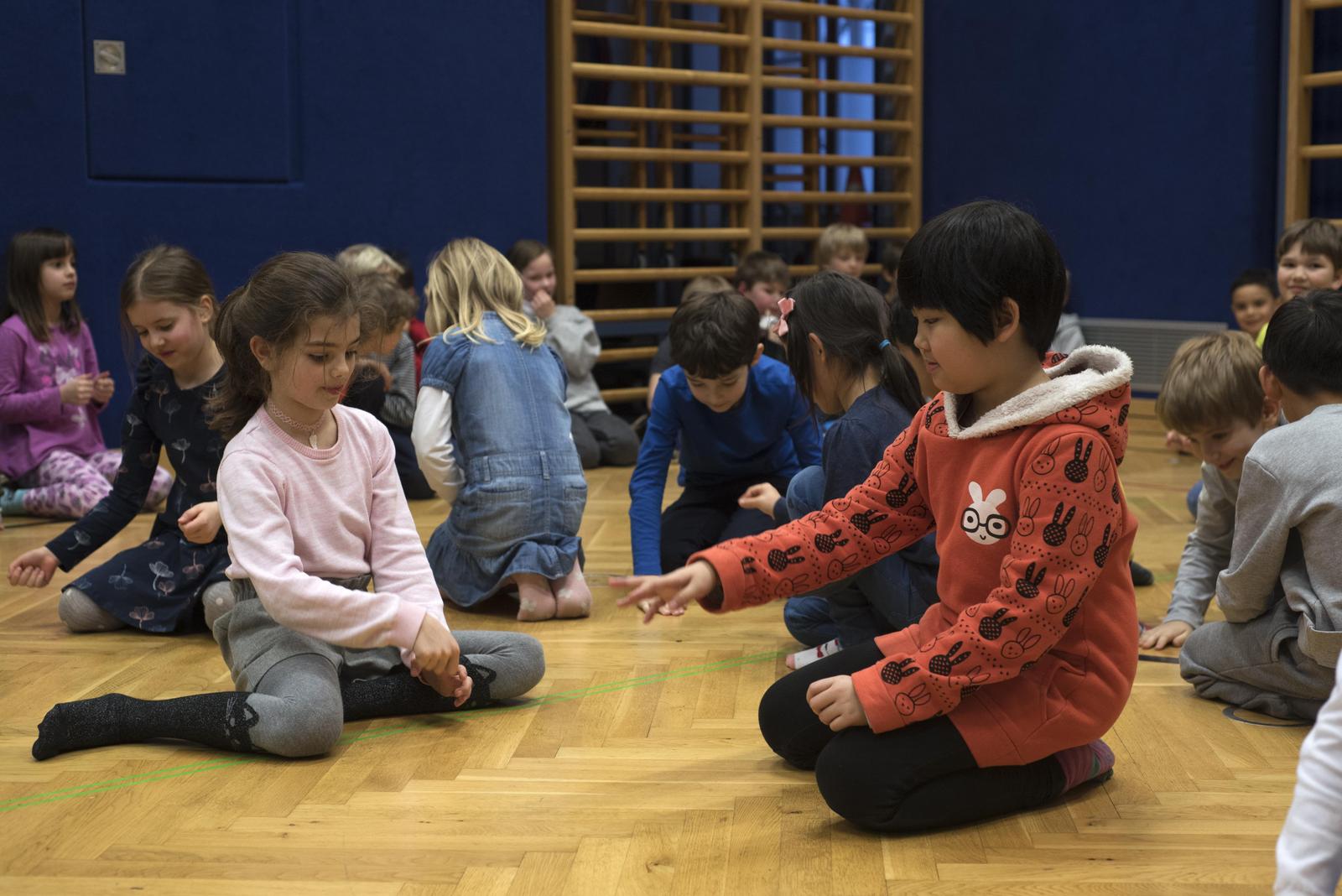 Danach wird das Theaterspiel vom Thema der Digitalisierung, mit der die Kinder in der Freizeit wie auch im Schulalltag immer mehr konfrontiert sind, inspiriert. Was heißt eigentlich digital und analog? Was ist der Unterschied zwischen einer digitalen Erfahrung und einer analogen? Was ist das jeweils Besondere? Welche Medien benutzen die Schüler/innen? Was gefällt ihnen daran (nicht)? Wie benutzen sie Medien? Wie erleben sie sich und ihre Mitschüler/innen im Umgang mit Smartphone, Tablet und Co.? Was ermöglicht Technik und wann ist sie eher Ablenkung? Ausgehend von diesen Fragen improvisieren die Kinder Szenen auf der Bühne und zeigen sie in der abschließenden gemeinsamen Aufführung. Sie erarbeiten die Aufführungsstruktur im Laufe der Woche gemeinsam und stimmen ab, ob digitale Medien auf der Bühne miteinbezogen werden.