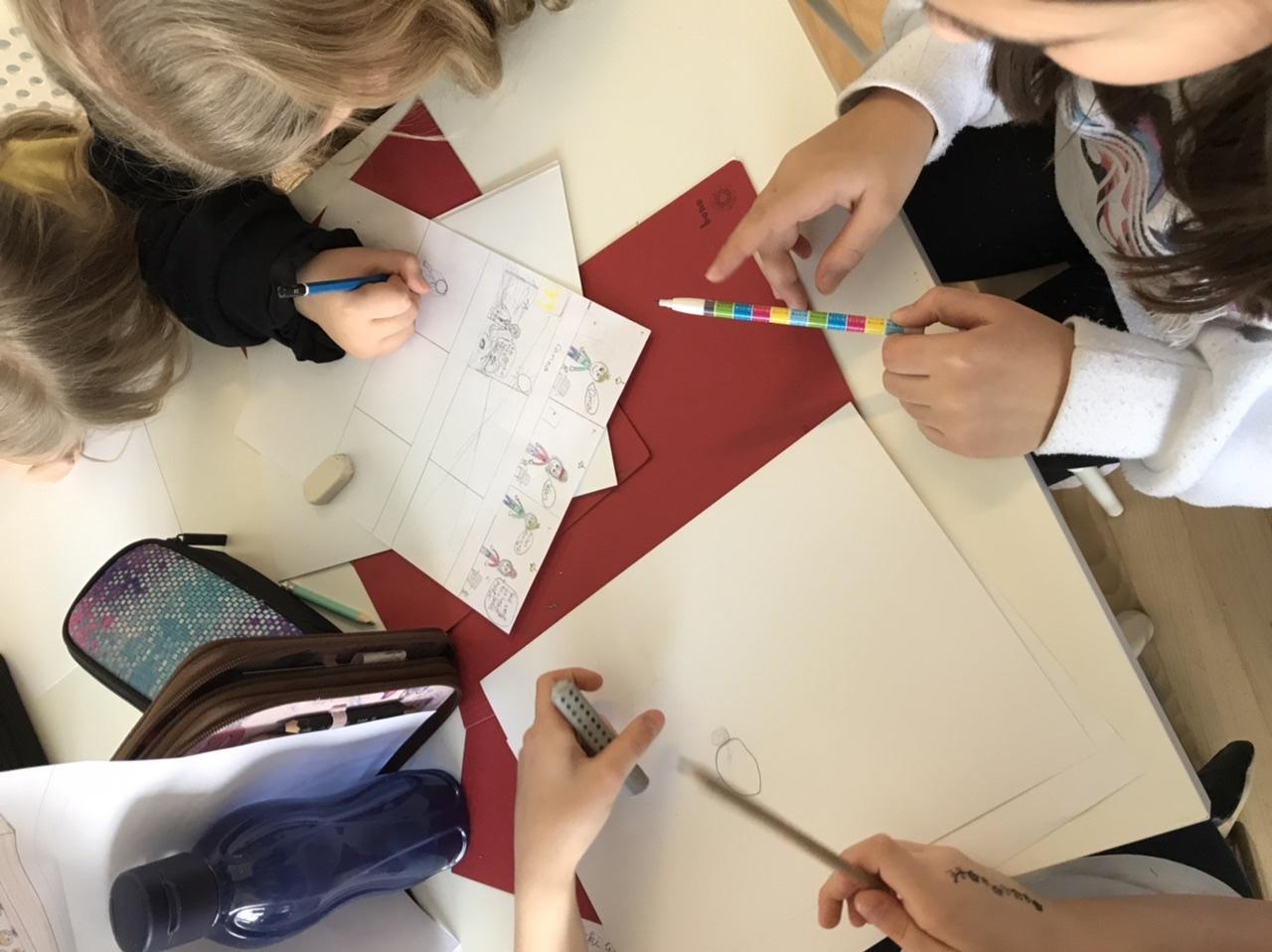 Die Schüler/innen machen printfähige Fotos mit dem Handy, bearbeiten sie mit der Medienkünstlerin und finden heraus, auf welche Besonderheiten bei einem Pressefoto zu achten ist. Außerdem besprechen sie, wie sie mit einfachen Mitteln ein ansprechendes Layout erstellen können. Worauf bei der (grafischen) Gestaltung eines Comic-Strips geachtet werden muss, ist ebenfalls Thema.