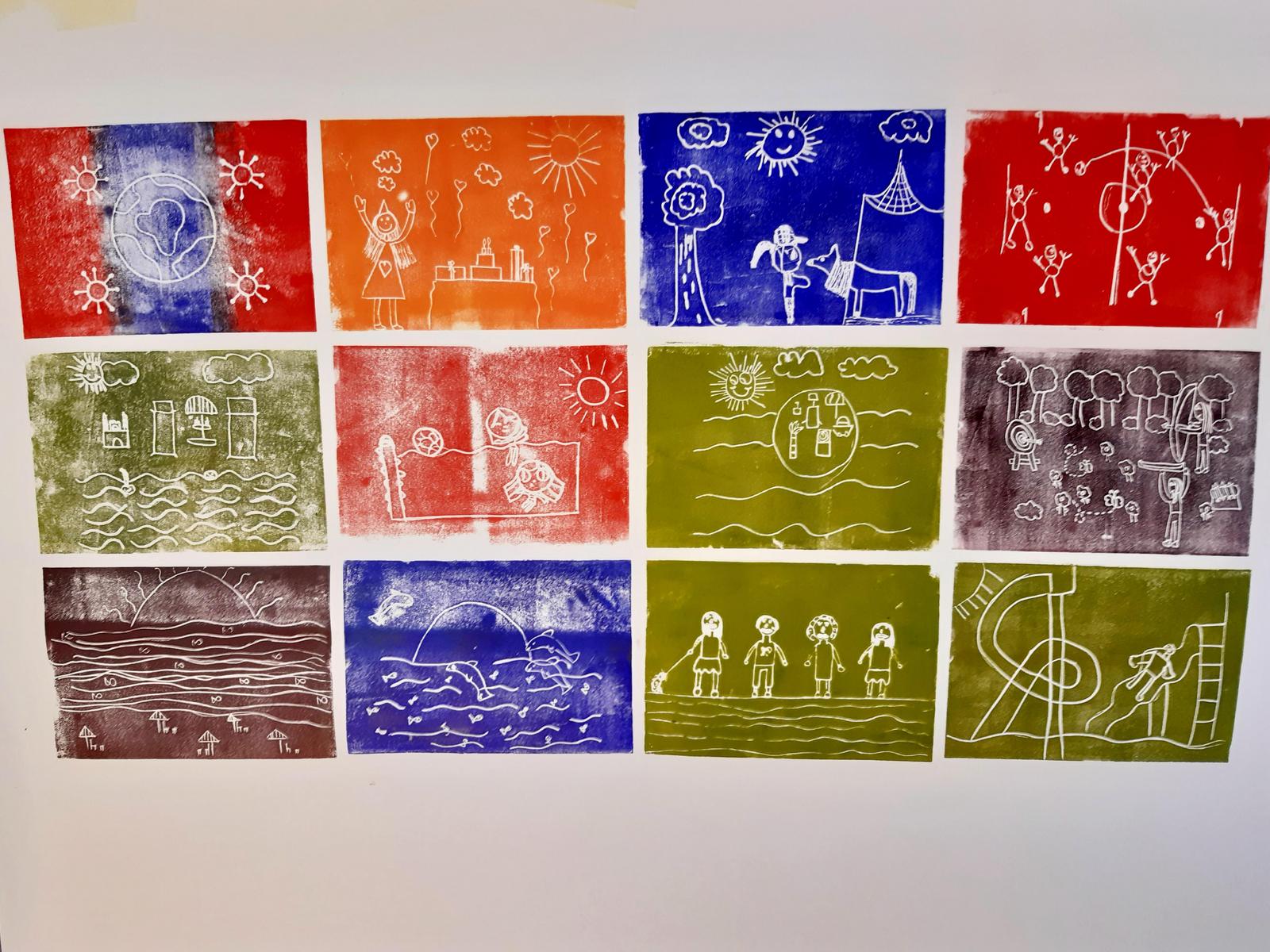 Die Schüler/innen entwickeln einen Kalender für das Jahr 2022, der verkauft und verschenkt werden kann. Die Kinder gestalten die Drucke, während eine Medienkünstlerin das Layout übernimmt. Der fertige Kalender, die Originaldrucke und die Gedichthefte werden bei der Abschlussveranstaltung der 4. Klasse vor den Eltern sowie im Stiegenhaus der Schule der Öffentlichkeit präsentiert.