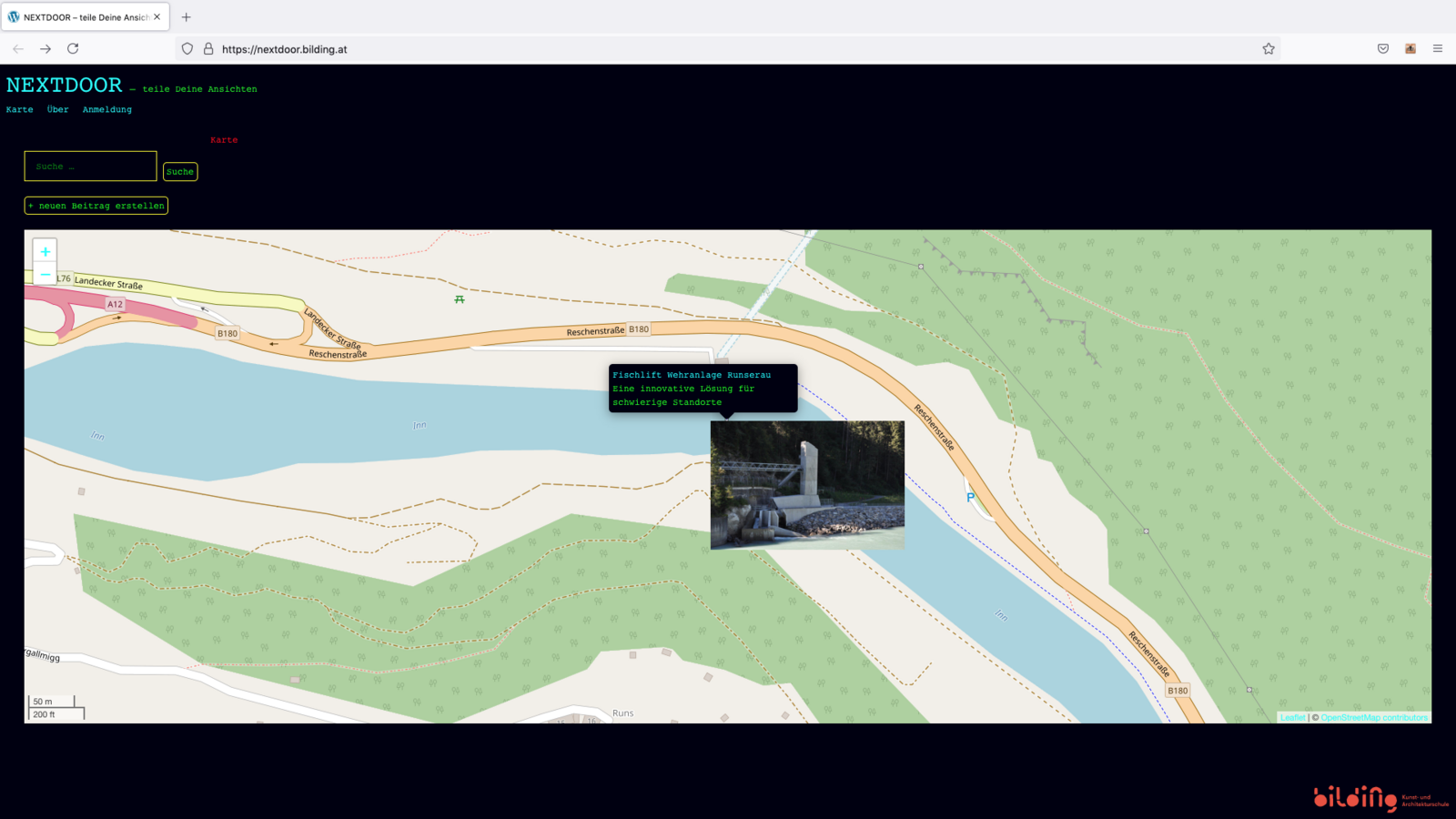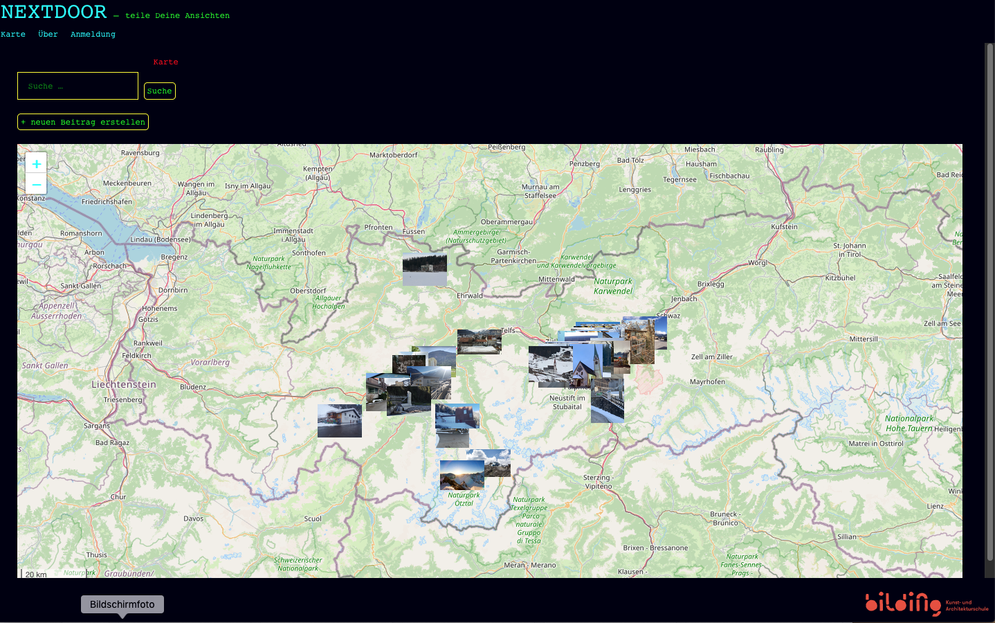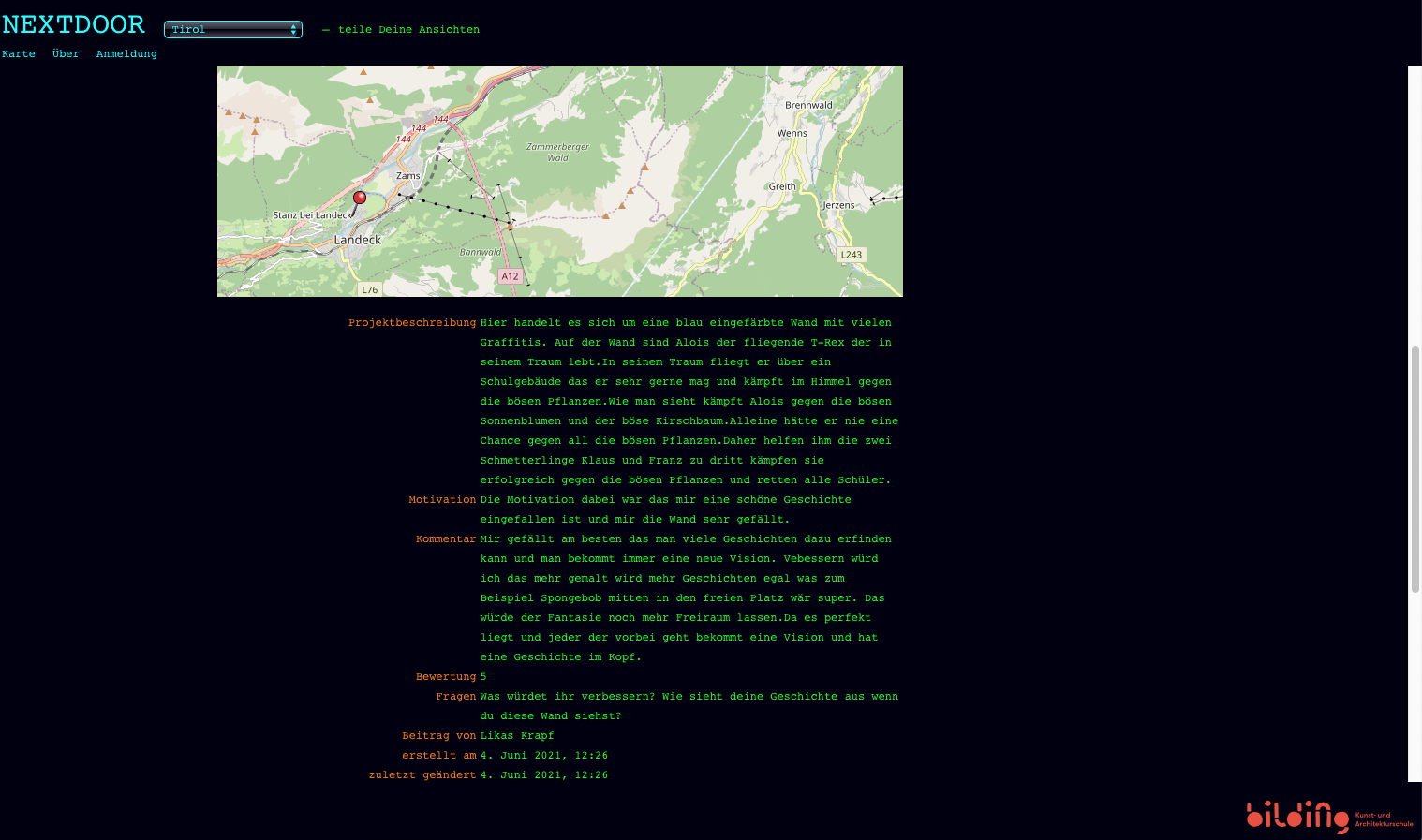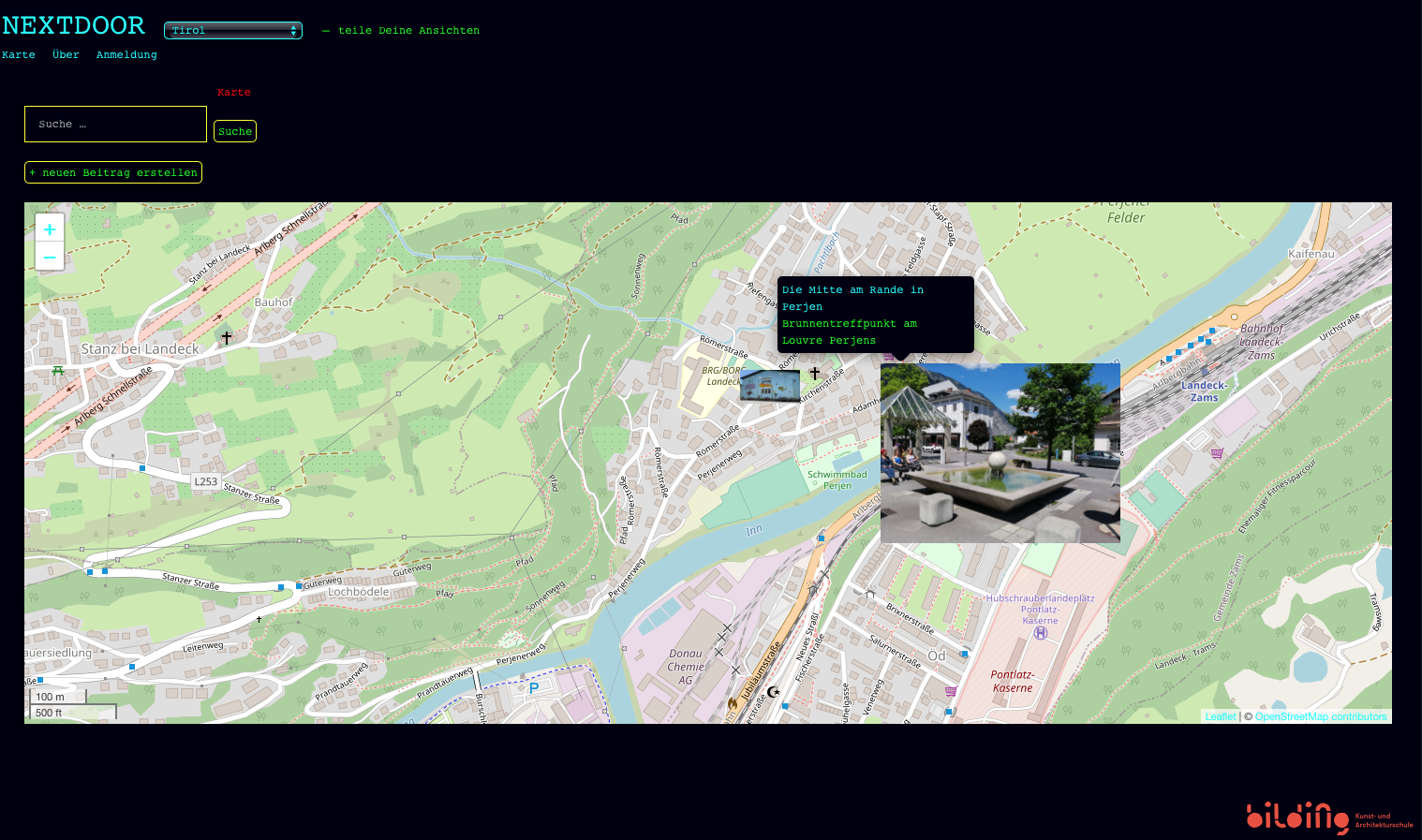 Mit dem Projekt "NEXTDOOR – Teile deine Ansichten" werden örtliche wie strukturelle Ballungsräume mit weit entfernten Orten und Tälern in Tirol verbunden und Jugendliche auch ausserhalb der Stadt erreicht und aktiv in die Auseinandersetzung mit Architektur involviert.