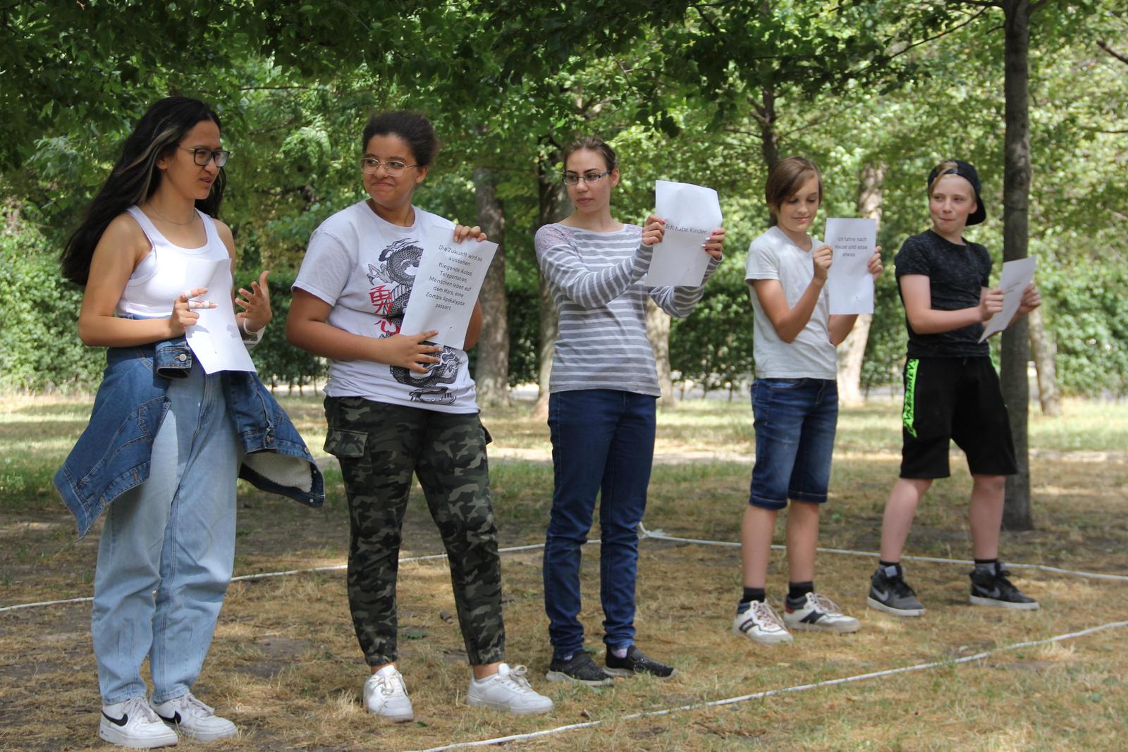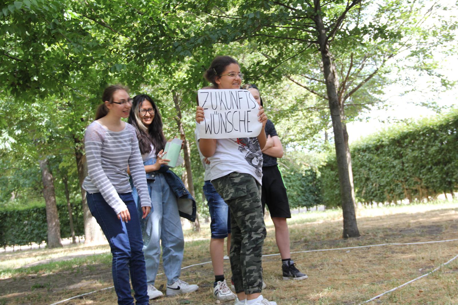 Die Schüler/innen und der Kulturpartner treffen sich zu erst via Videotelefonie, dann in der Schule. In dieser Zusammenarbeite wird eine Aufführung mit den "Zukunftsvisionen" der Schüler/innen erarbeitet. Diese geben sich gegenseitig Feedback für ihre Ideen und überlegen davon ausgehend, was sie sich für eine Zukunft wünschen.