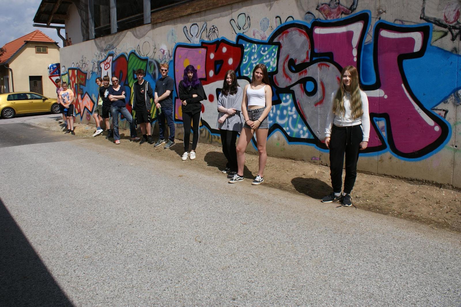 Klassenübergreifend setzen die Schülerinnen und Schüler der Mittelschule Markt Hartmannsdorf sichtbare Zeichen zum Thema "Future Living – New Perspectives" im öffentlichen Raum und bedienen sich dabei den Kunstformen Street Art und Urban Art.
