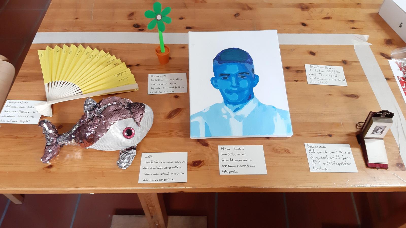 Die Schüler/innen tragen Objekte, Kostbarkeiten und Gegenstände von ganz persönlichem Wert aus der Familie oder von Freundinnen und Freunden zusammen. Darüber hinaus wählen sie Andenken und Erinnerungsstücke ihrer Heldinnen und Helden oder Souvenirs berühmter Persönlichkeiten aus dem Museum aus. Aus den vielen Objekten wählen Gruppen jeweils ein Objekt für die Ausstellung aus. Für die Präsentation werden die Gegenstände von der Abteilung Visuelle Medien gefilmt und in der Ausstellung in Ton und Farbe gezeigt.