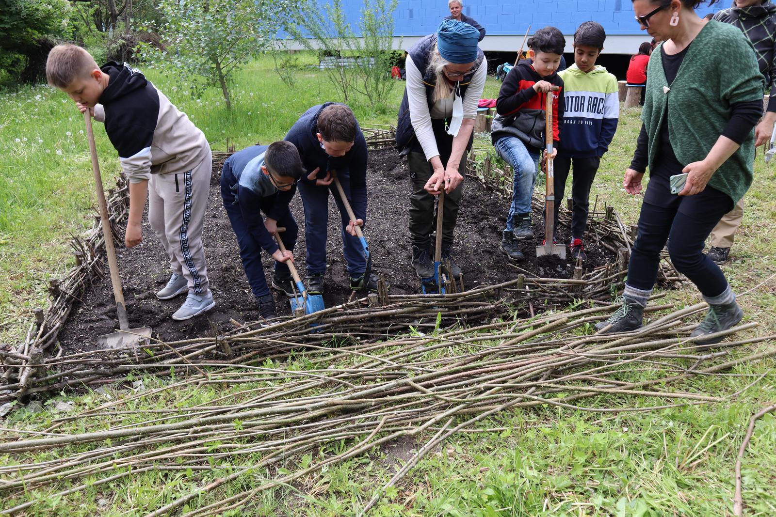 Die Schülerinnen und Schüler der Volksschule 11 St. Ruprecht erweitern den urgeschichtlichen Garten am Gelände des Mitmachmuseums in Klagenfurt. Gemeinsam mit mehreren Experimentalarchäologinnen und -archäologen bearbeiten die Kinder regelmäßig die zu bewirtschaftenden Flächen. Sie säen, sammeln Blumen und pflanzen Wildobst sowie Wildfrüchte an, wie Menschen dies zur Zeit der Pfahlbauten getan haben. Sie lernen viele Pflanzen und Hölzer kennen und basteln Schmuck, Stöcke und Namenschilder und bauen Zäune.