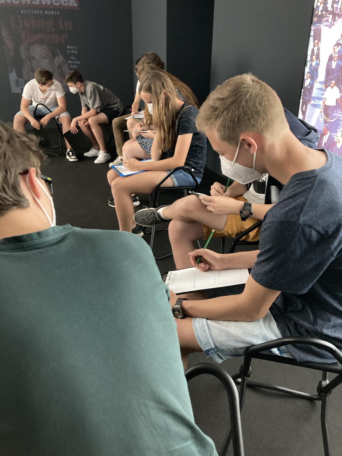 Die Schülerinnen und Schüler besuchen die Ausstellung "This World Is White No Longer" und erkunden unterschiedliche Räume. Das Museum entpuppt sich als umfassender und neuer Erfahrungsraum, in dem verschiedene Räume vorhanden sind, die von Künstler/innen gestaltet wurden.
