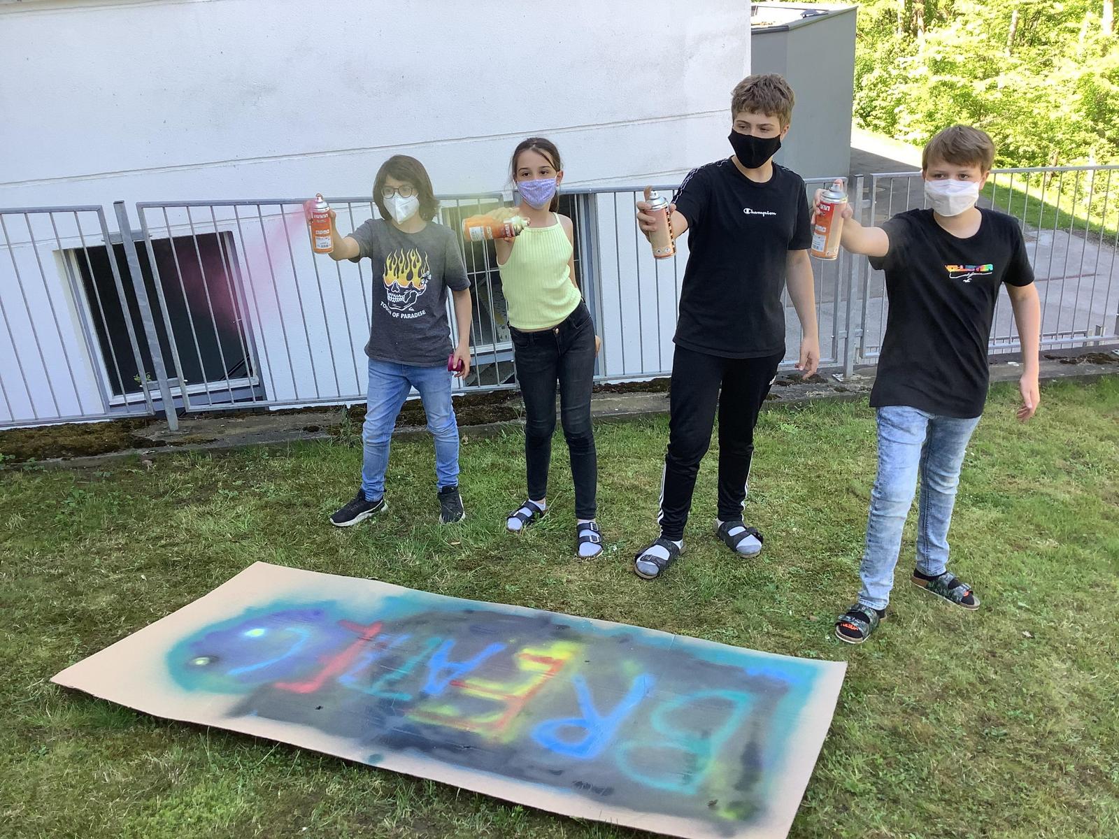 Im nächsten Schritt bastelt eine Klasse elf überdimensionale Pappfiguren, während die andere Klasse Informationen recherchiert und Texte verfasst. Das Drama & Dance Ensemble der Schule spricht die Texte ein, transformiert sie, mit Unterstützung des Kulturpartners, in Audio-Files und erstellt QR-Codes. Die Teilnehmenden versehen den Pappfiguren nun jeweils mit einem QR-Code, über den die Besucher/innen der Installation zu einer eingesprochenen Online-Botschaft gelangen, welche die thematischen Bezüge des Projekts verdeutlicht.