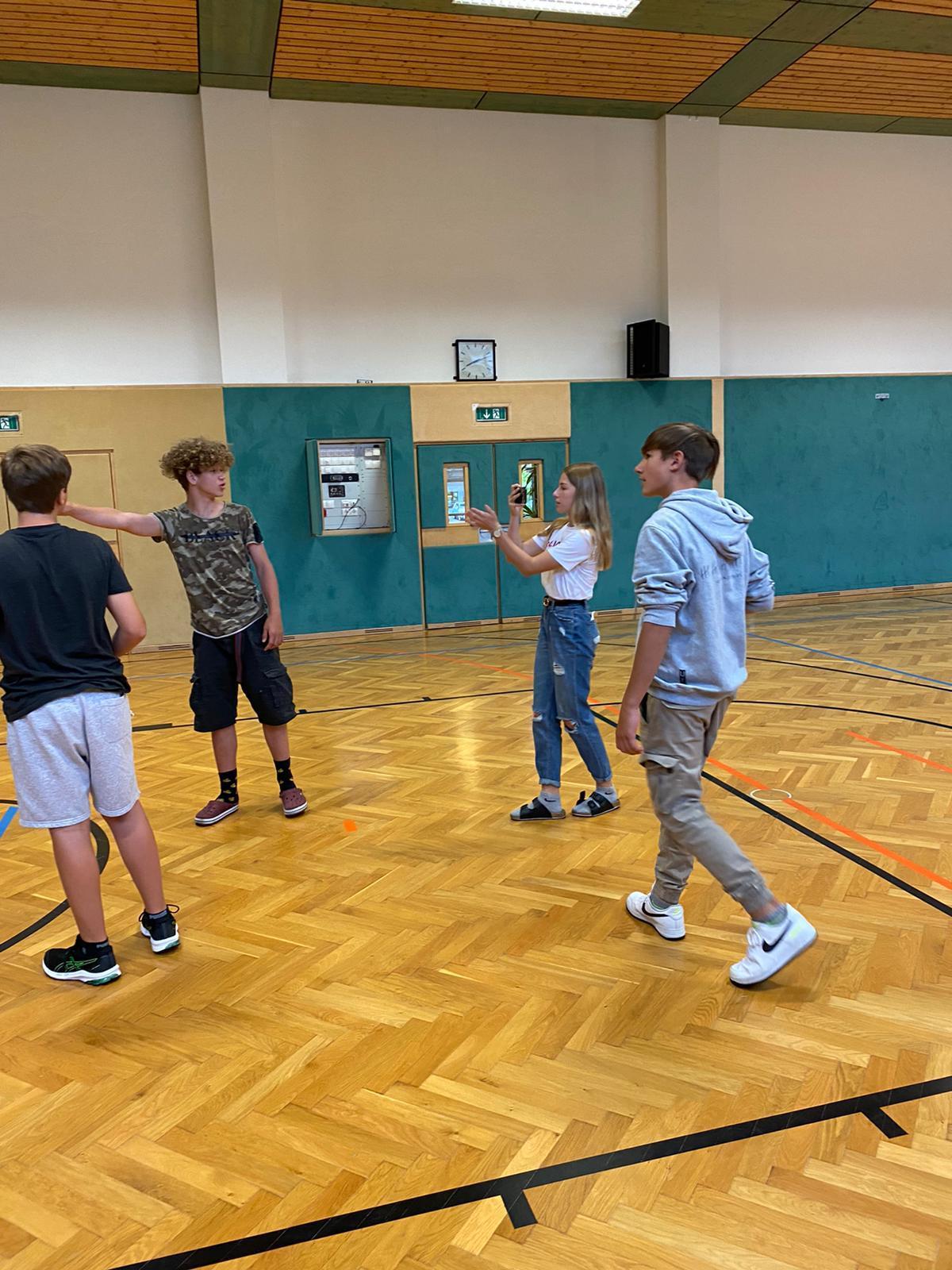 Die zweite Variante beschäftigt sich mit Schauspiel- und Präsenzübungen sowie einer Einführung in technische Programme. In Kleingruppen betreiben die Teilnehmenden Recherchearbeit. Daraus entwickeln die Schüler/innen kurze Szenen, die mit einer Handy-Kamera aufgenommen, geschnitten und online über Microsoft-Teams oder Youtube präsentiert werden. Die ausgearbeiteten Kurzfilme werden zum Abschluss intern präsentiert.