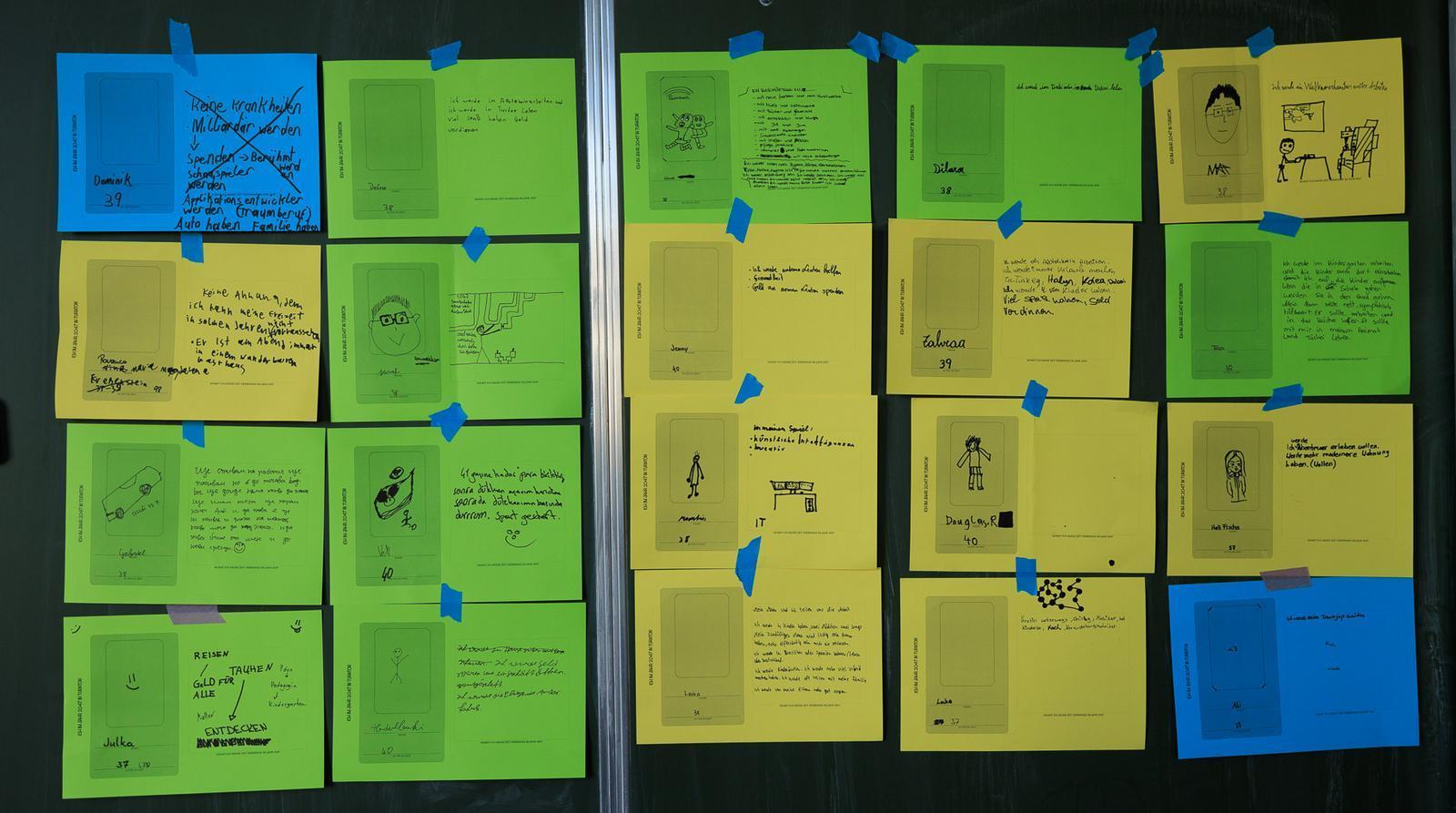Den Auftakt des Projektes “Schule 2047“ macht ein einwöchiger Workshop, in welchem die Mittelschülerinnen und -schüler gemeinsam mit dem Kollektiv Time’s Up mögliche Szenarien für das Jahr 2047 erarbeiten. Die Jugendlichen nähern sich unter Benutzung adaptierter Instrumente der Zukunftsforschung spielerisch an die Entwicklung von Storyworlds an. Sie beginnen mit der Positionierung des zum Erwachsenen gewordenen Kindes im Jahr 2047. Die Schüler/innen zeichnen fiktionale Figuren, statten diese mit Biographien aus, um diese im Verbund mit anderen Gruppierungen zu formen. Sie erfinden eine wichtige Sache, für die sich diese Figuren im Jahr 2047 engagieren. Im Anschluss entwickeln sie mit Mitteln des Spekulativen Designs Werbemittel, die für Außenstehende ausreichend Information und Attraktivität bieten, dem Bündnis beizutreten oder dieses zumindest zu unterstützen.