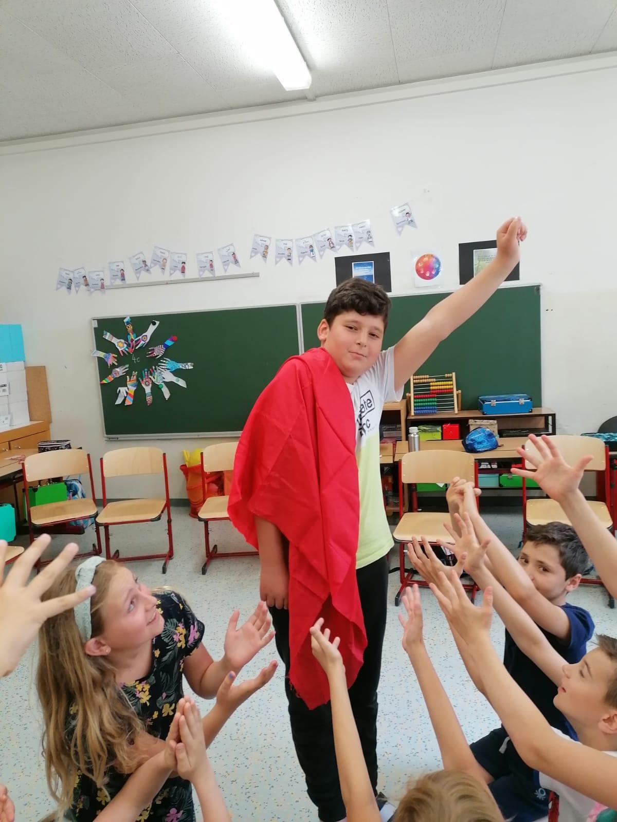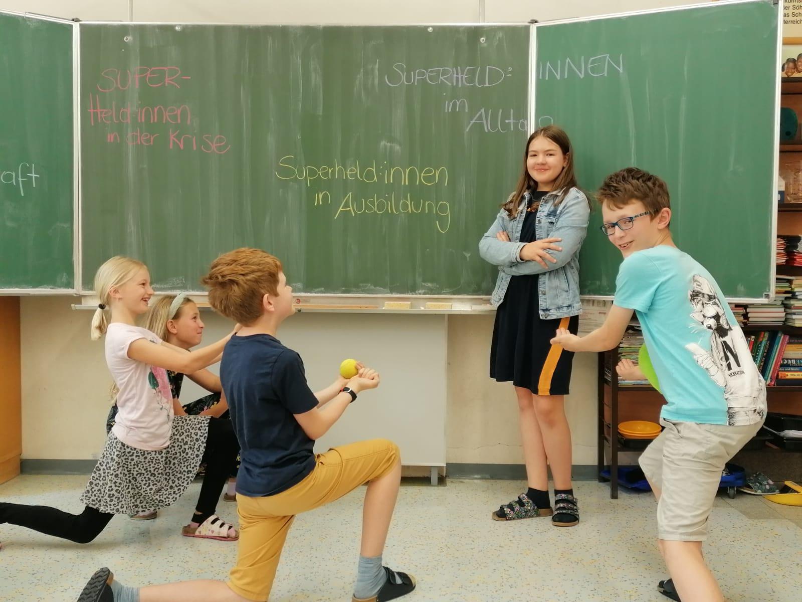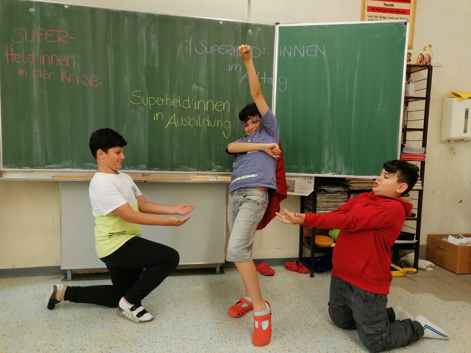 Die Schülerinnen und Schüler der 4c der Volksschule Diesterweggasse entwickeln gemeinsam mit einer Theaterpädagogin das Theaterprojekt “Forever Superheroes“.