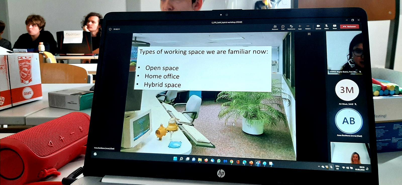Das Projekt wird – wie geplant – als hybride Veranstaltung in englischer Sprache durchgeführt: eine Klasse erhält einen Präsenzworkshop, eine weitere Klasse wird online zugeschaltet. Der Verein Poetry in Business gestaltet die Präsenzveranstaltung, eine Künstlerin aus Hamburg ist online zugeschaltet. In Phase 1 stellen die Schülerinnen und Schüler der HTL Villach ihre Objekte vor, die für ein produktives Lernen wichtig sind: zum Beispiel eine Uhr, die darauf hinweist, wann eine Pause fällig ist, oder eine Füllfeder, mit der sich Lernende Notizen machen, weil sie sich handschriftlich festgehaltene Inhalte besser merken. Die Jugendlichen sammeln wesentliche Gedanken in Word Clouds und auf einer Padlet-Wall.