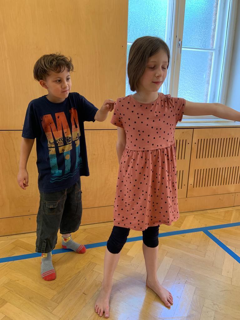 Gemeinsam mit dem Kulturverein Herzblut vertiefen sich die Kinder in Phantasiereisen, Körperstudien, verschiedene Bewegungsangebote (Vergrößerungen, Verkleinerungen, Spiegelungen, Wiederholungen, Verfremdungen). Sie arbeiten mit Geräuschen und der Stimme (Jiverish, verschiedene Körpergeräusche), erforschen und analysieren Kontraste und Gegenteile (Gegenteil von einer Körperhaltung, einer Bewegung). Sie beteiligen sich an Spielen, Geschichten und Gruppenimprovisationen. Mit Unterstützung der Theaterschaffenen verbalisieren die Schüler/innen ihre Erfahrungen in Gesprächskreisen. Anfangs sind sie noch etwas skeptisch dem abstrakten Thema gegenüber. Aber nach und nach fassen sie Vertrauen und erforschen mit wachsender Begeisterung und viel Spielfreude die Grenzen zwischen Ich und Nicht-Ich. Sie genießen es, sich in Szenen oder kleinen Geschichten präsentieren zu dürfen, den Fokus auf sich zu spüren, zu erzählen, was sie bewegt. Sie erleben sich selbst als wandelbar und aktiv.