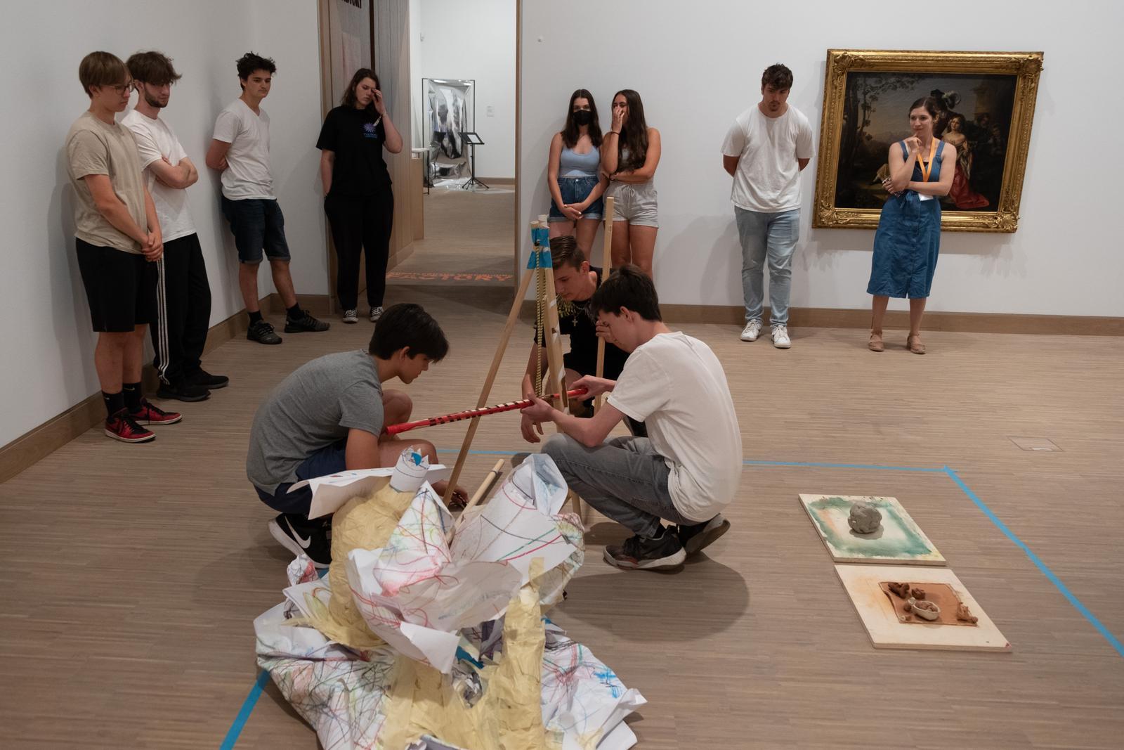 Im Projekt “Pivotal Bodies: Körper am Drehpunkt II“ setzen sich die Schülerinnen und Schüler des BG und BRG Geringergasse Wien zusammen mit einer Kunstvermittlerin und Choreografin des Künstlerhauses mit den Themen der aktuellen Ausstellung 1503 auseinander. Im Laufe des Projektes arbeiten sie mit verschiedenen Materialien (Papier, Wachsfarben, Holz, Ton). Während der Workshops erforschen die Jugendlichen durch Tanz und Bewegung die Kunstwerke der Ausstellung ganz direkt. Sie sind individuell und in kleinen Gruppen tätig.