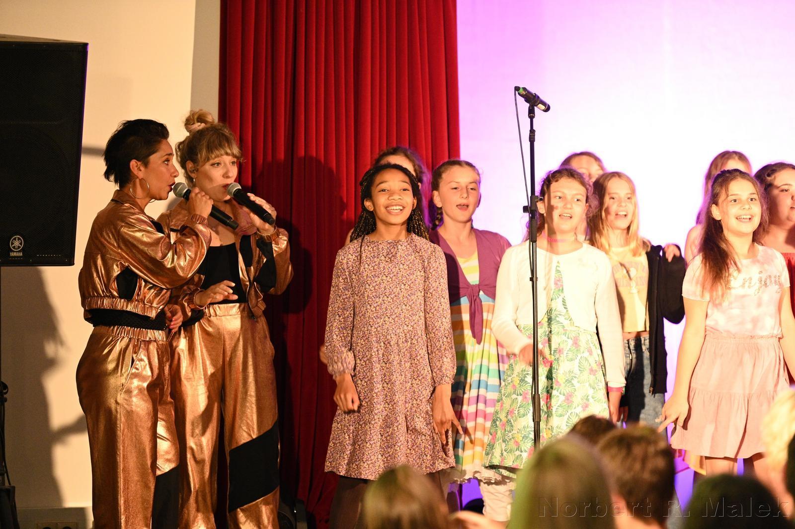 Die Gymnasiastinnen und Gymnasiasten veranstalten am 25. Mai 2022 eine Aufführung an ihrer Schule. Die jungen Sänger/innen überzeugen sowohl stimmlich als auch mit ihrer Bühnenpräsenz ihre im Publikum sitzenden Angehörigen, zahlreiche Schulkolleg/innen sowie Lehrende und Ehrengäste.