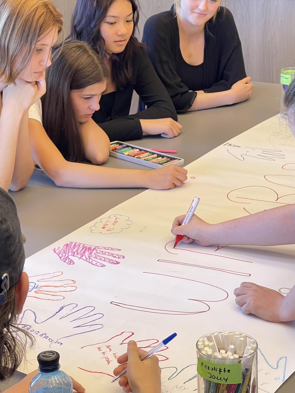 Die jungen Leute organisieren unter anderem am 21.3.2022, dem Internationalen Tag gegen Rassismus, ein Foto im Schulhof, wo verschiedene Klassen sich aufstellen, um das Wort “WIR“ zu bilden. Dieses Foto verbreiten sie dann auf diversen Social Media-Kanälen.