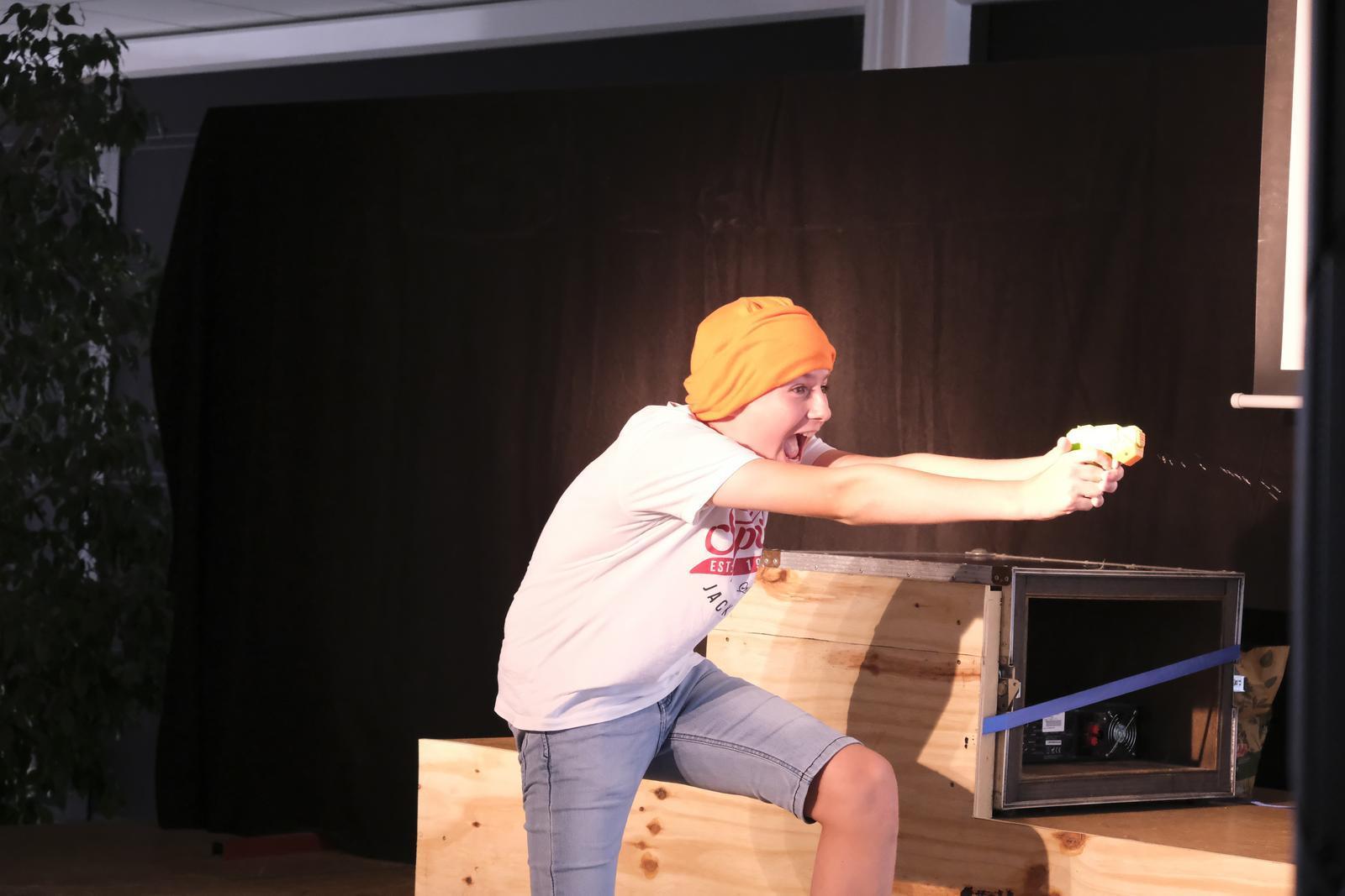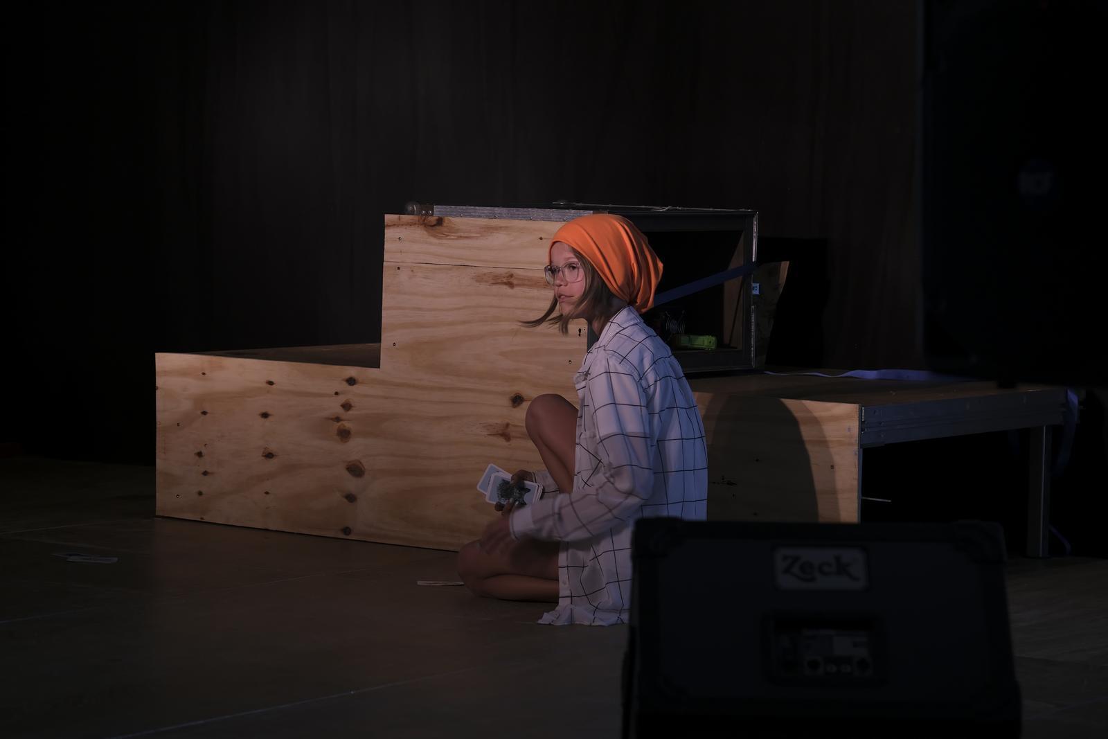 Die Schüler/innen beabsichtigen mit ihren Videos einen Rhythmuswechsel und wollen die die Geschichte dem Publikum noch einmal auf einer anderen Ebene verständlich machen. Mit Live-Musik transportieren sie im Theaterstück Gefühle.