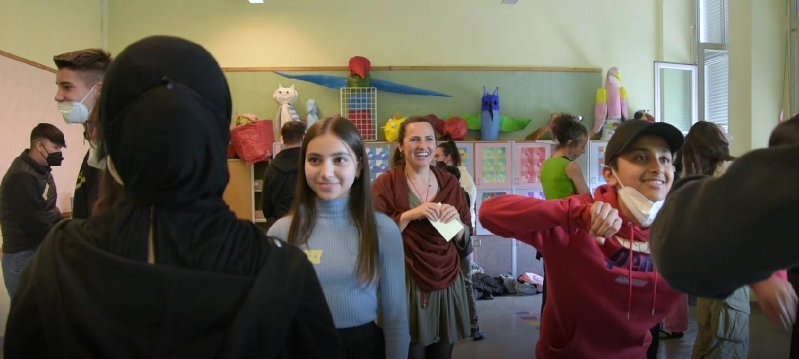Mit Hilfe theaterpädagogischer Methoden des Vereins s’Kollektiv erarbeiten und sammeln die Schülerinnen und Schüler der Albert Schweitzer Mittelschule Perspektiven auf die von ihnen gewählten Themen Heimat, Sicherheit und Europa. Sie verwenden dazu ihren ganzen Körper, was ihnen eine Verkörperung der eigenen Haltung dazu ermöglicht.