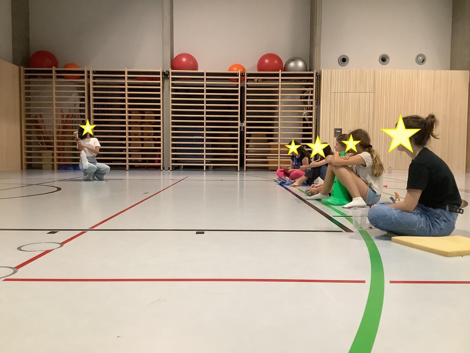 Die Teilnehmenden des Projektes entscheiden sich gegen eine Präsentation. Daher gibt es mehr Zeit für ein spielerisch-künstlerisches Ausprobieren. Der Projektleitung erscheint dies zu diesem Zeitpunkt am “dringendsten und drängendsten“, weshalb sie den Fokus darauf legt. Die einzelnen Schüler/innen werden im Prozess immer mehr zu einem Ensemble, das getragen wird von kontinuierlicher Spielfreude.