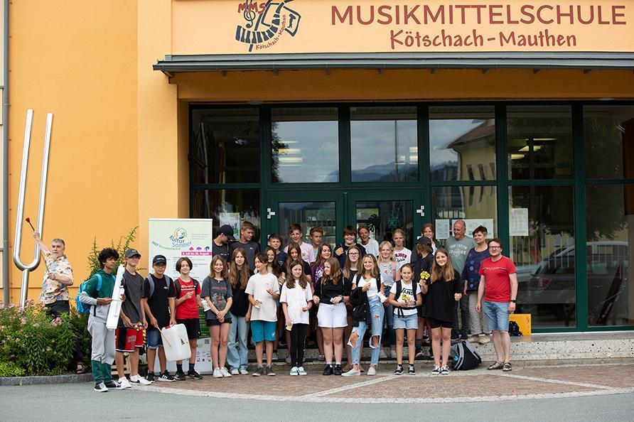 Die von den Kulturschaffenden initiierte Zusammenarbeit mit der Schule, zwischen Workshopleitern und Lehrenden, zwischen dem jungen Klang- und Reportage-Team endet mit einem gemeinsamen “akustischen Schlussbild“ vor dem Schulgebäude – mit dem Direktor, den Lehrenden, Schüler/innen und Vorbeigehenden als interessiertes Publikum.