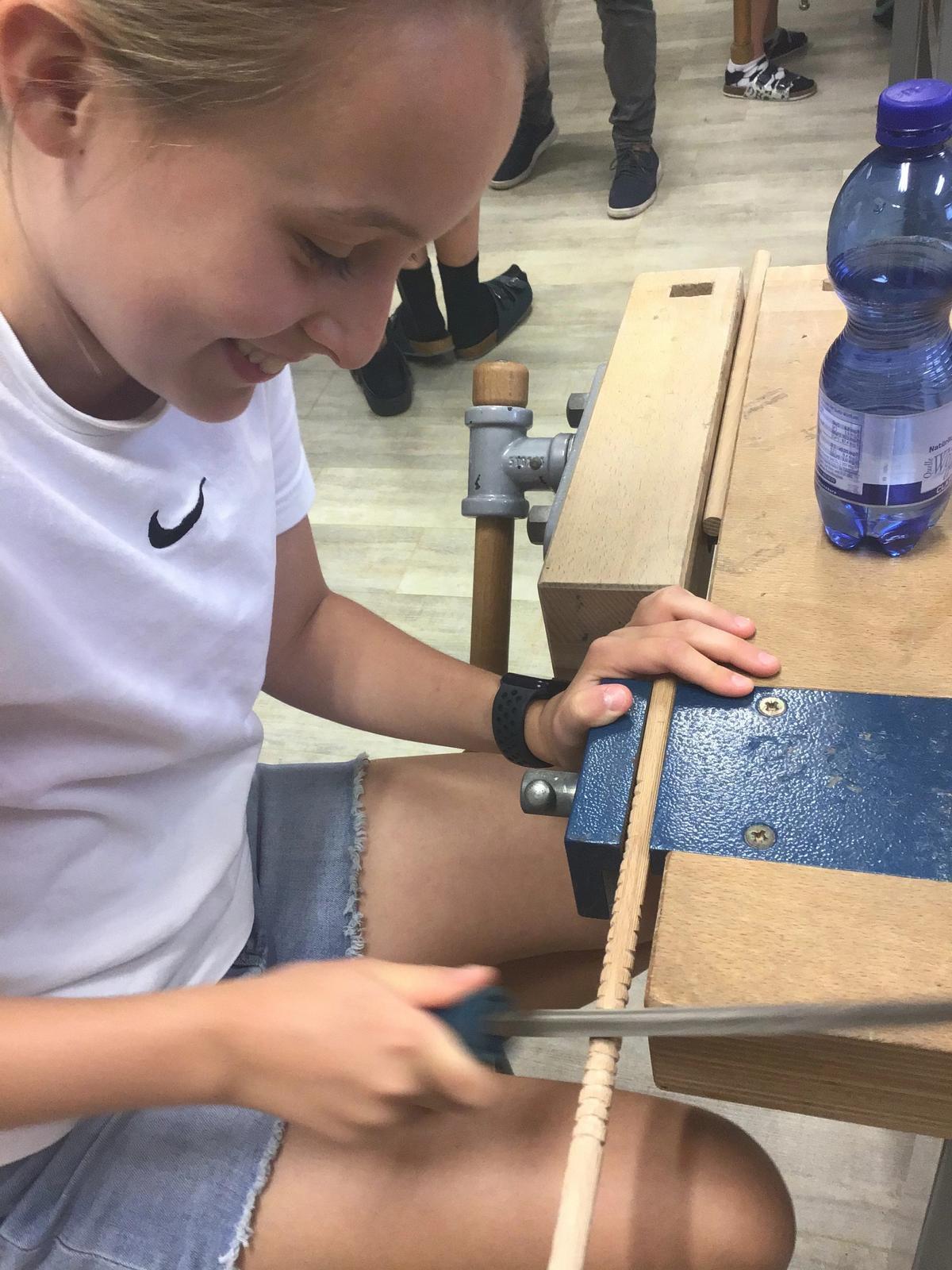 Die Schülerinnen und Schüler, angeleitet von einem Musikkünstler des Via Iulia Augusta Kultursommers, bauen aus Naturmaterialien, Alltags- oder Abfallgegenständen einfache Perkussions- und Blasinstrumente. Sie fertigen diese selbst und experimentieren damit. Die Kinder erproben einen ungewöhnlichen Zugang zur Klangerzeugung. Der Workshopleiter veranschaulicht physikalisch-akustische Prinzipien in praktischer Weise (z. B. Maßverhältnisse, Schwingung, Resonanz). Sie entwickeln gemeinsam ein rhythmisch-perkussives Musikstück.