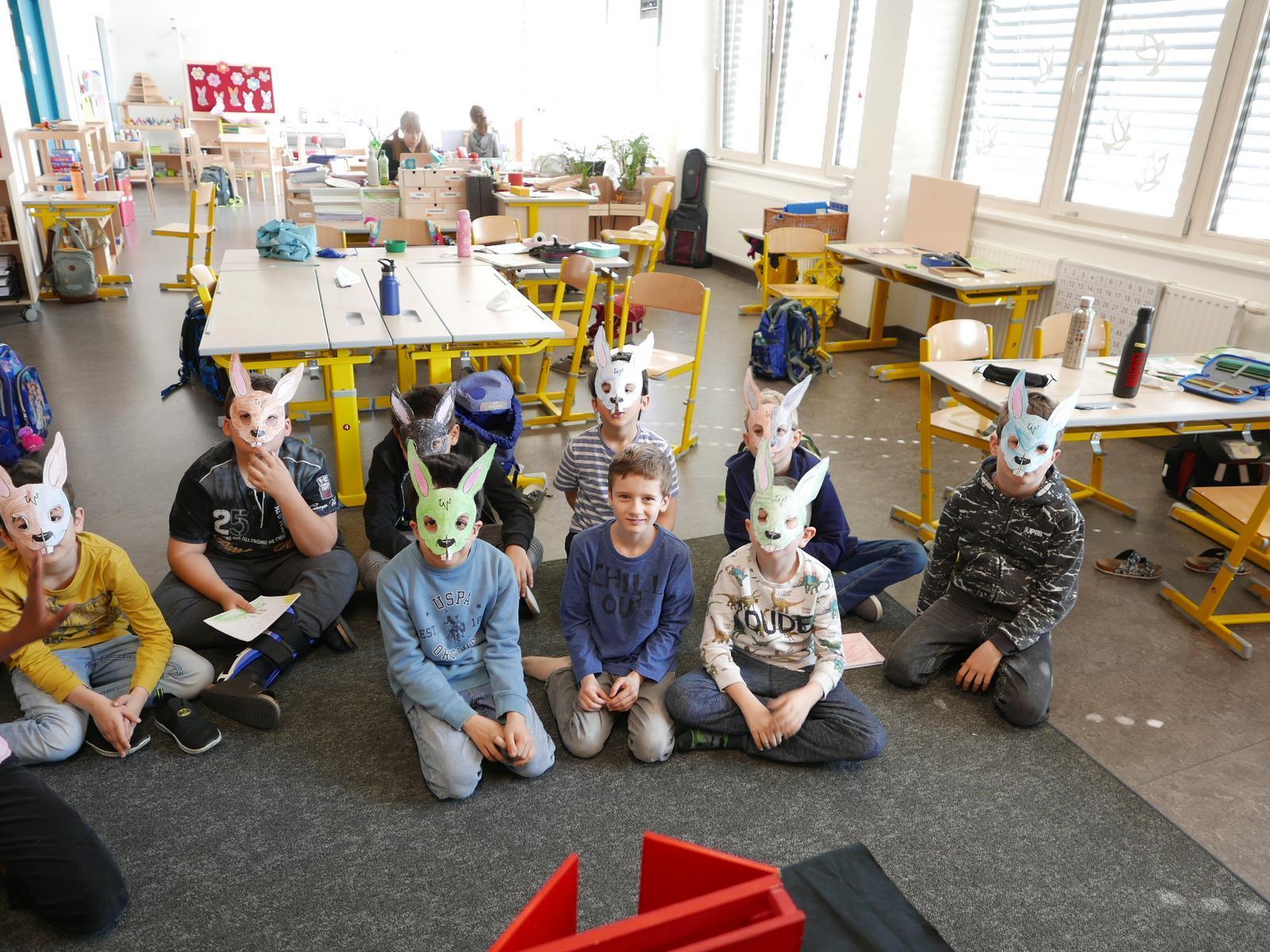 Die Schülerinnen und Schüler der Volksschule 2 Vorgartenstraße Wien lernen das japanischen Bildtheater Kamishibai durch Bildkartengeschichten von den Theaterschaffenden kennen.