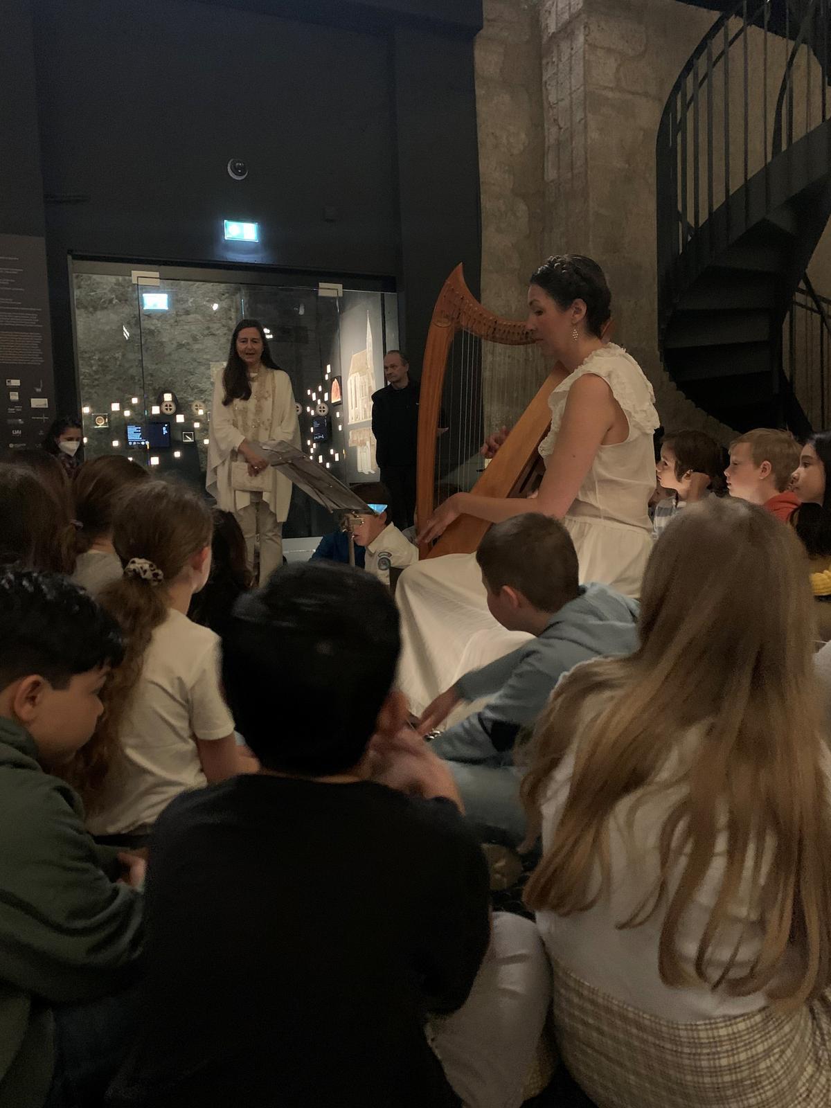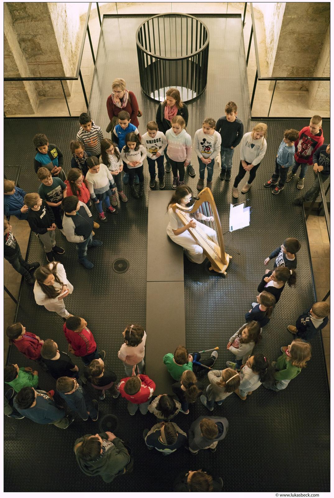 Die jeweiligen Klassen nehmen nach einer mehrwöchigen Vorbereitungszeit an einem Workshop mit einer Harfenspielerin und Pädagogin teil. Die Schüler/innen bereiten sich auf das gemeinsame Konzert in der Virgilkapelle vor und lernen die Harfe als Instrument kennen.