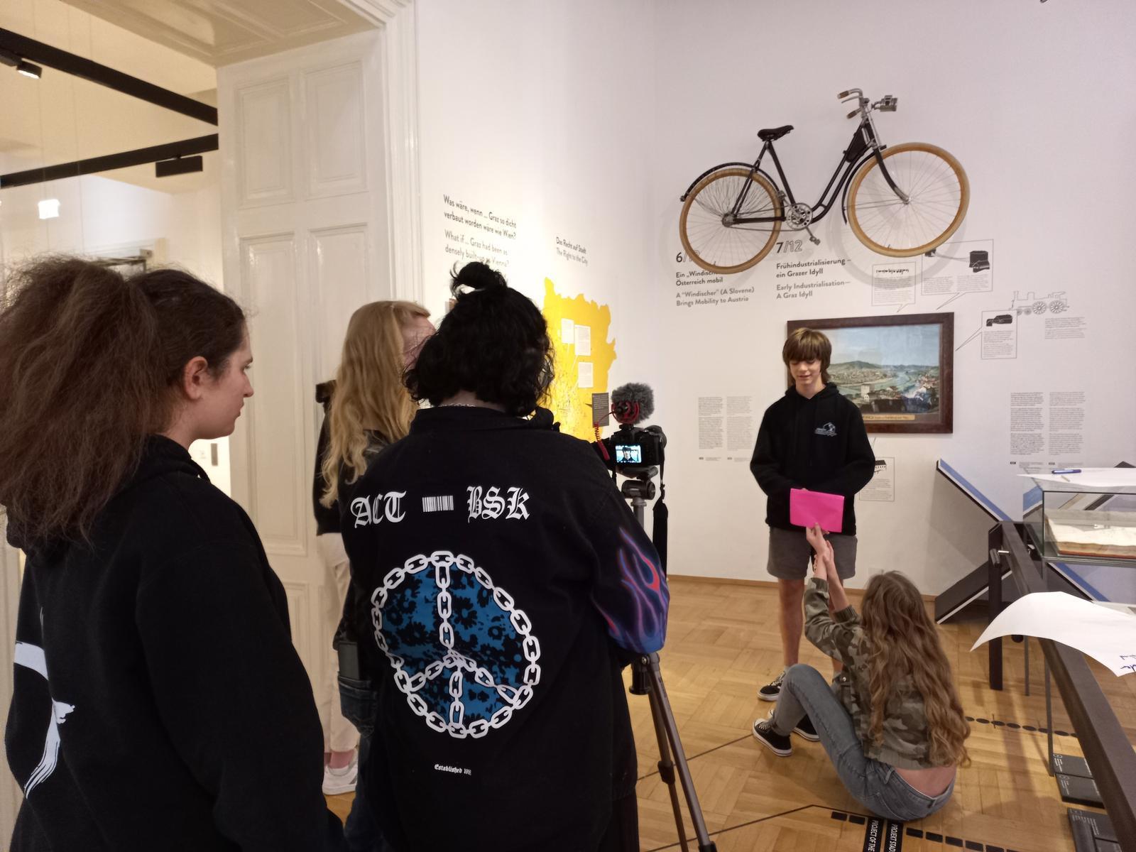 Sie wählen unterschiedliche Filmgenres für ihre Umsetzung: ein dokumentarischer Film zu Geschlechterrollen sowie ein Spielfilm zu Rechtsprechung im Mittelalter. Sie erhalten Anleitungen von professionellen Filmschaffenden und Unterstützung von ihrer Klassenlehrerin sowie zwei Kulturvermittlerinnen. Im praktischen Teil – dem Filmdreh – arbeiten die Jugendlichen mit Foto-Kameras, Stativen, Aufnahmegeräten und beziehen hier ihre alltäglichen digitalen Medien ein: Handy, Laptop oder Stand-PC. Sie benutzen die verschiedenen Geräte einerseits für das Filmen, andererseits für Recherche-Arbeiten und die Dokumentation. Sie lernen digitale Medien in der Sammlung, in der Ausstellung und der Objektpräsentation kennen und diskutieren darüber. Sie treffen die Pressesprecherin des Museums, die ihnen einen Einblick in die Werbe- und Marketing-Strategie des Museums sowie Tipps für das Filmemachen gibt.