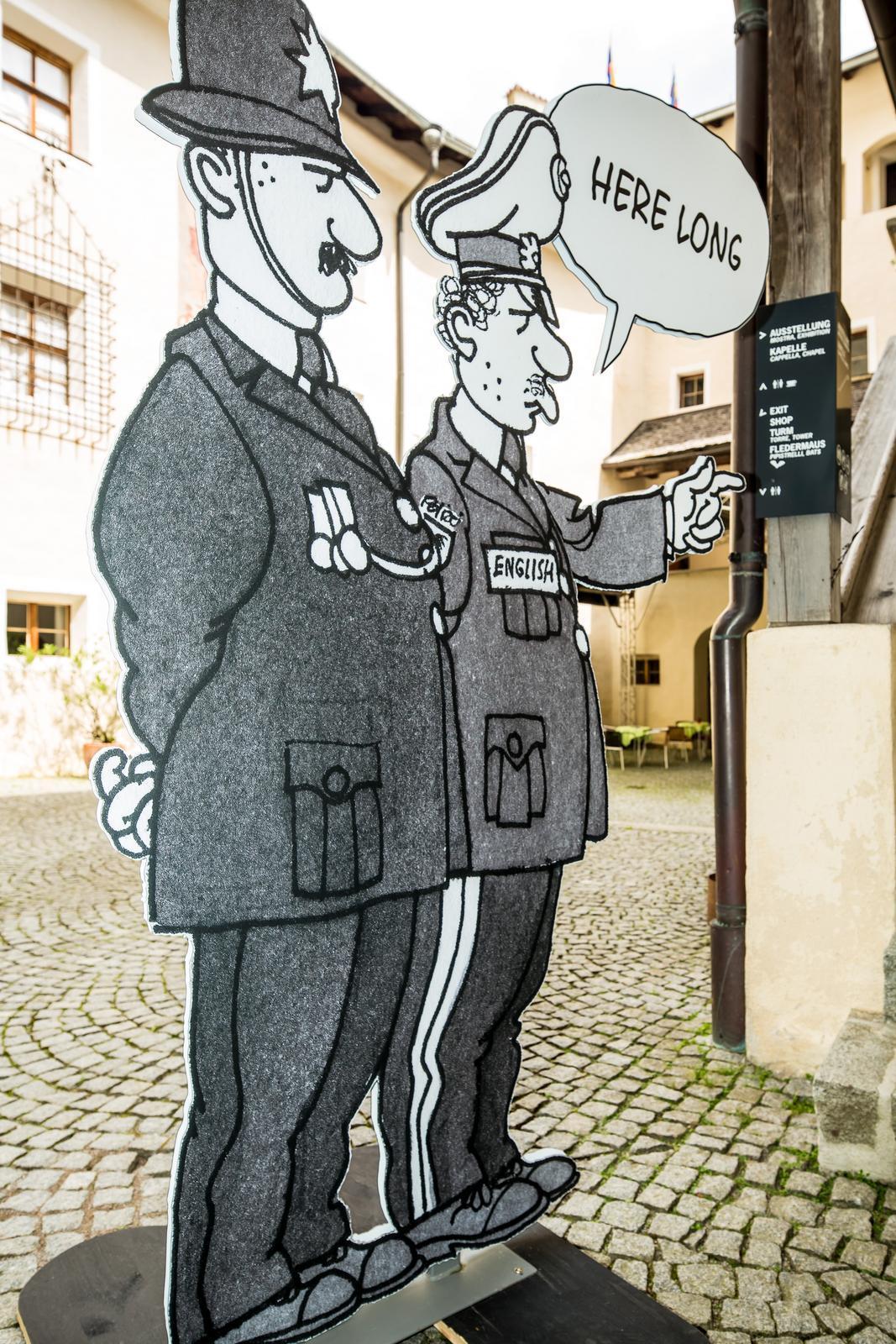 Zum Abschluss und zur Abrundung besuchen die Schüler/innen das Museum Schloss Bruck. Im dortigen Workshop vertiefen sie Themenbereiche, erleben, bewundern und erarbeiten aber vor allem auch die Originale von Gerhard Haderer.