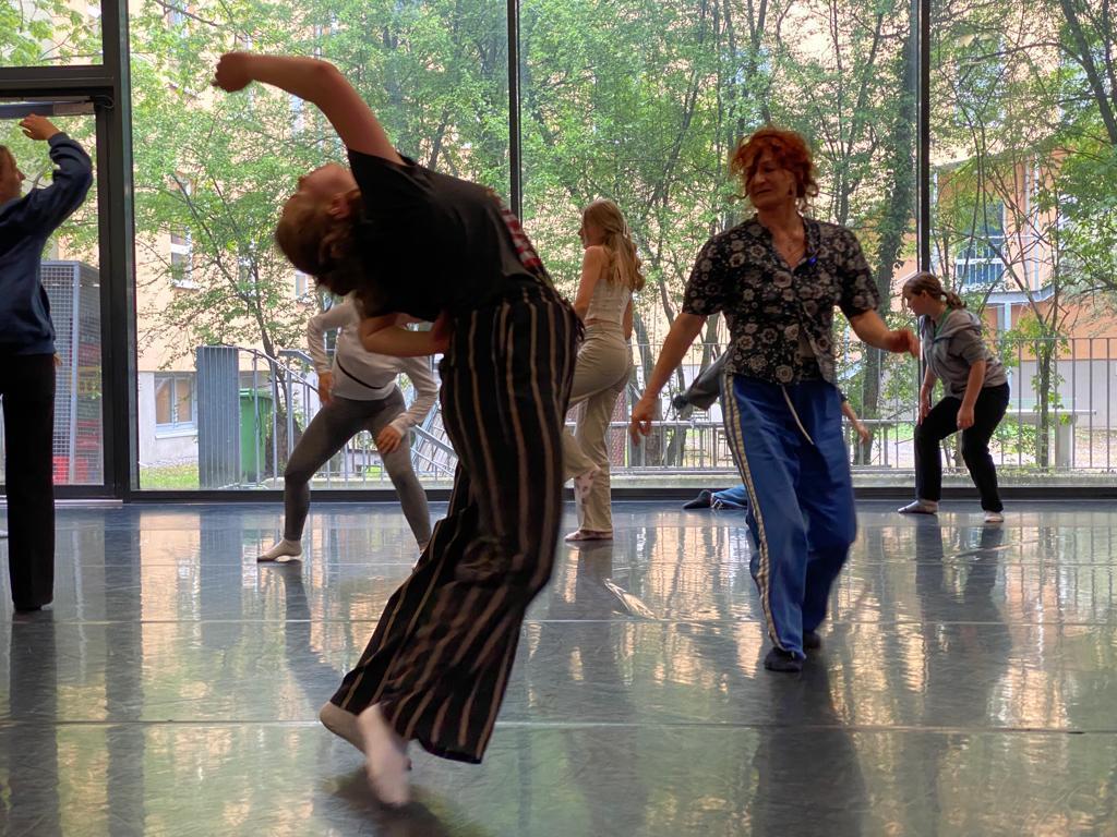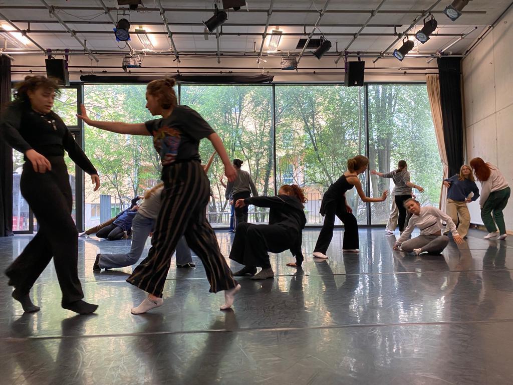 Die Jugendlichen wohnen einer Probe bei, in denen die Choreografin und Tänzer/innen die Arbeitsweise praktisch veranschaulichen. In der anschließenden Gesprächsrunde stellen die Teilnehmenden viele Fragen zu dieser den meisten bis dahin unbekannten Kunstform: zur Interaktion der Tanzenden, zum Einsatz von Musik und vielen anderen Aspekten.