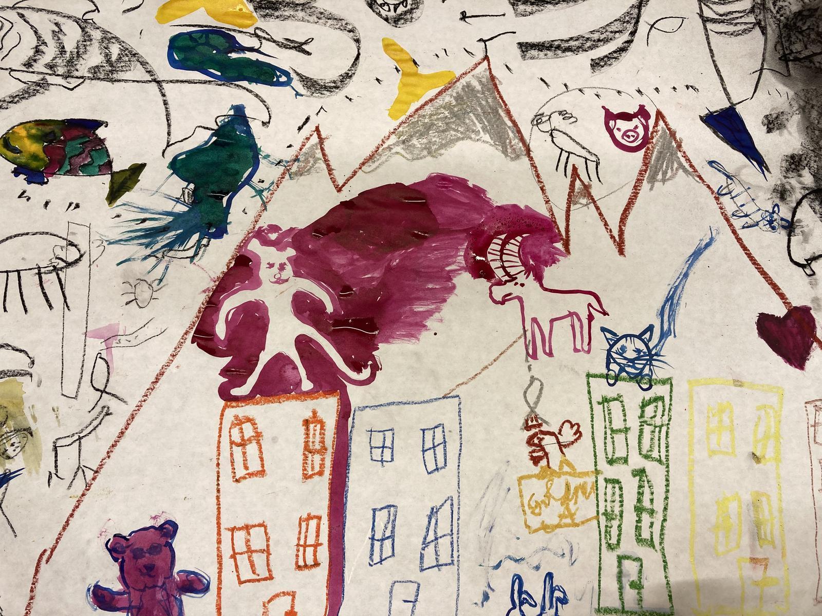 Sie schaffen ein Gemeinschaftskunstwerk in Form eines großformatigen Bildes, dass ihre Erfahrungen nochmals auf einer weiteren künstlerischen Reflexionsebene ergänzt.