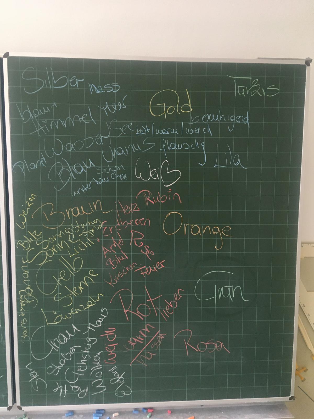Als Ausgangspunkt des Vorhabens setzen sich die Schülerinnen und Schüler mit den Farben und ihren Eigenschaften auseinander. Gemeinsam mit dem Verein Wilhelmina erarbeiten sie die einzelnen Farben in Bezug auf ihre Dynamik, Assoziationen und Gefühle. Wie fühlt sich zum Beispiel Rot an? Welche Gefühle assoziieren die Schüler/innen mit der Farbe? Wie können sie bestimmte Farben und ihre Eigenschaften in der Bewegung ausdrücken? Die Kinder gestalten ihre Geschichte musikalisch und tänzerisch. Sie entwickeln Choreographien für die Farben grau, rot, blau, gelb und grün. Sie improvisieren mit Bewegungen und verarbeiten diese zu einem Tanz. Jede Klasse präsentiert ihre Gestaltung bei einer internen Schulveranstaltung für die Eltern und Kinder der Schule.