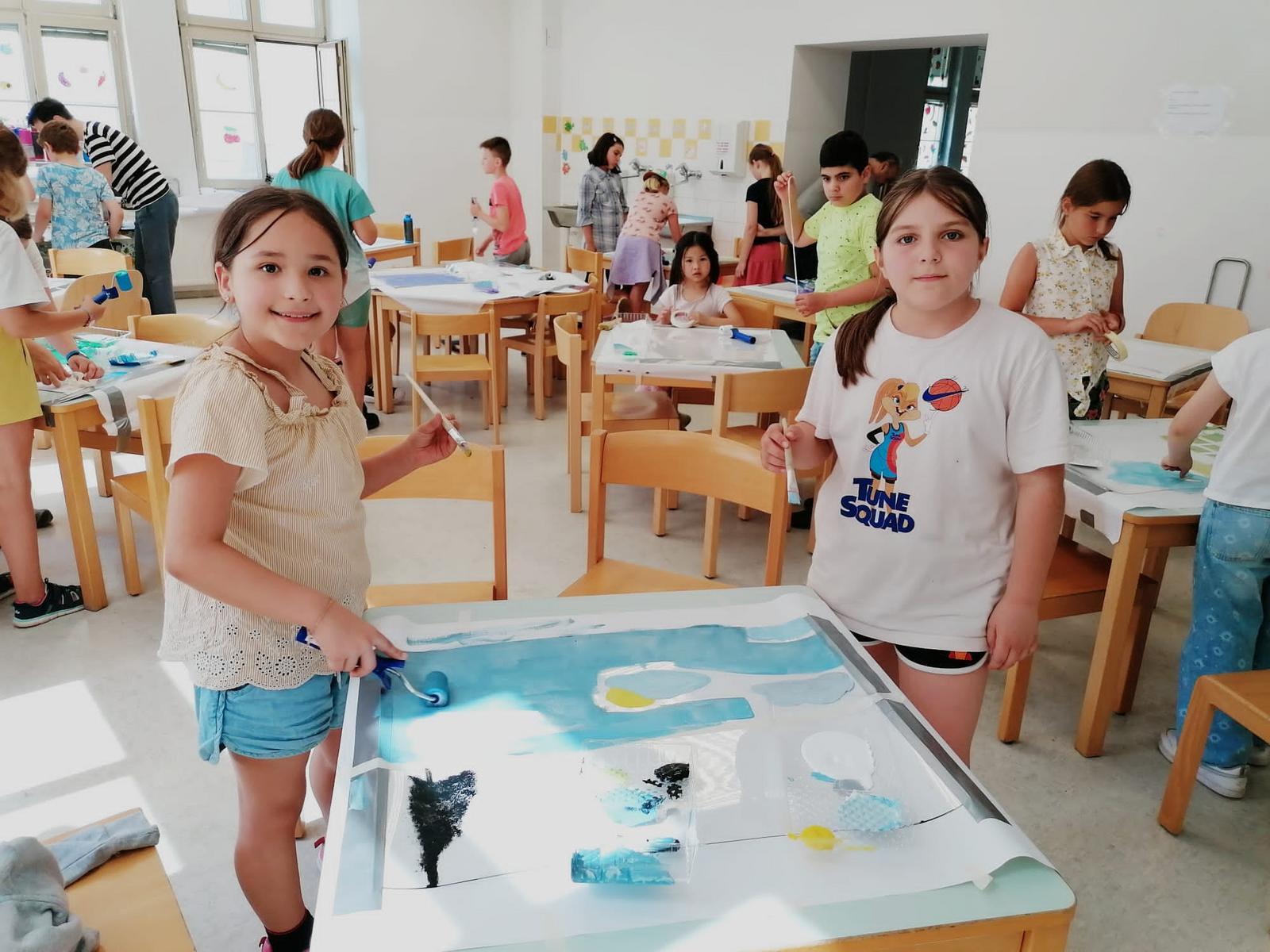 Die Schülerinnen und Schüler der Volksschule Phorusgasse lernen durch den Kunstverein Migrart die Themen des Projekts “Licht“ kennen. Zusammen mit Bildbeispielen und nach dem theoretischen pädagogischen Prinzip diskutieren sie Licht und dessen kulturelle, soziale, märchenhafte und symbolische Bedeutungen. Die Kinder tauchen in verschiedene kreative Techniken ein, erfahren vieles über das Material selbst und dessen Verwendung. Da das gegebene inhaltliche Feld symbolisch und semantisch sehr weit gefasst ist, werden die Schüler/innen in neun Gruppen eingeteilt. Jede Gruppe konzentriert sich nach Reflexion und Diskussion auf ein gemeinsames Thema, das sich auf die Symbolik und Bedeutung von Licht bezieht. Nachdem die Themen festgelegt sind, bereiten die Kinder eine Zeichenvorlage oder -basis vor. Diese bildet die Grundlage für die Farbinterpretation auf einer transparenten Kunststofffolie. Zusammen mit der Gruppenzeichnung erstellen sie verschiedene Interpretationen zum Thema Licht. Sie verknüpfen diese verbal und symbolisch mit verschiedenen subjektiven, persönlichen und objektiven, allgemein semantischen Lösungen und Vorschlägen. Sie verwenden Acrylfarben und führen eine Farbinterpretation der Zeichnung durch, die sie auf einer transparenten Kunststofffolie realisieren. Gleichzeitig lernen die Schüler/innen die verschiedenen Einsatzmöglichkeiten von Acrylfarben kennen: von der Verwendung von Pinseln bis zum Bedrucken, Kratzen, Auftragen von Farbe usw.