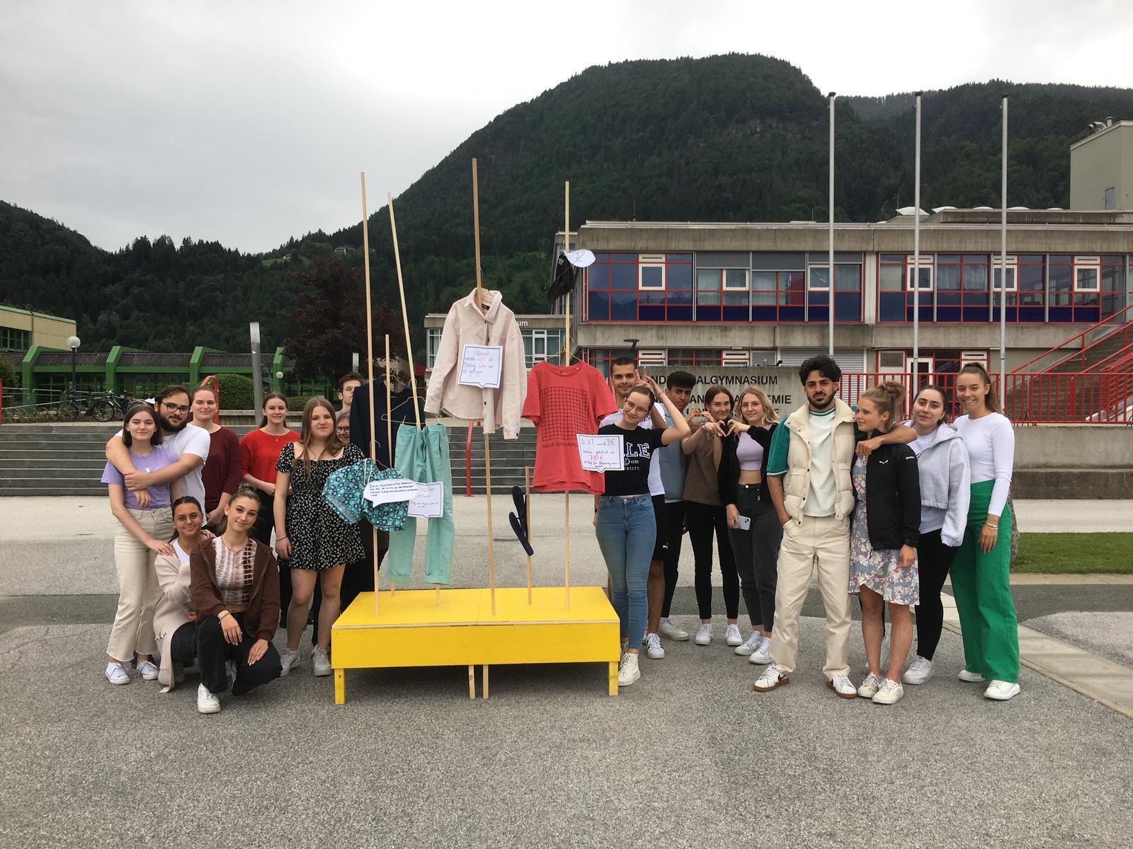 Die Schüler/innen erkennen, dass viel dagegen getan werden kann, um das Modesystem zu verändern. Sie konzipieren und bauen gemeinsam mit dem Kulturpartner ein textiles Monument als Botschaft und tragen diese in den Stadtraum.