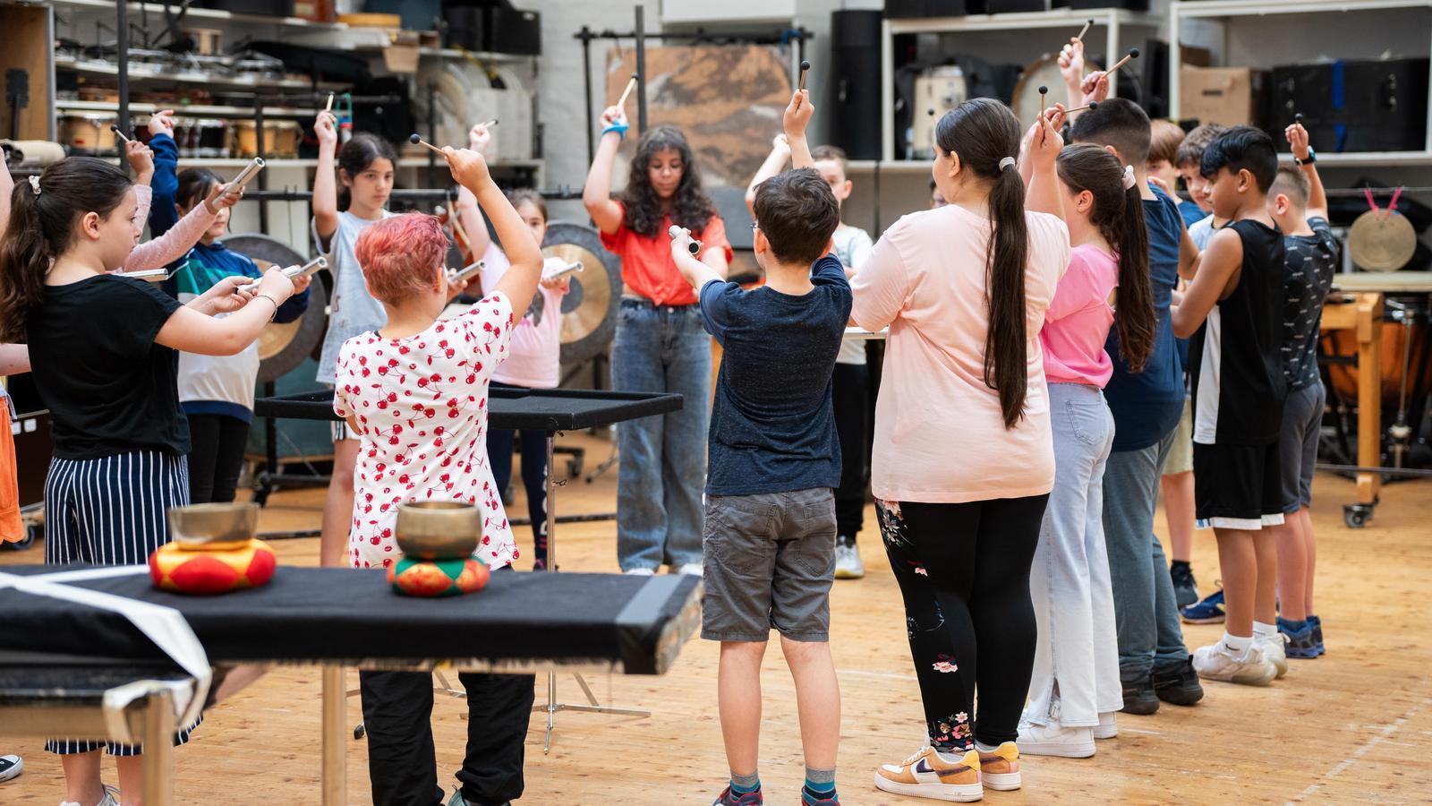 Das Klangforum Wien hat diese Schulklasse vier Jahre lang (unterbrochen von der Covid-19-Pandemie) bei der gemeinsamen Erkundung des Klangs und seiner Transformationen begleitet. In den diesjährigen Workshop-Terminen haben die Schüler/innen der 4. Klasse gemeinsam mit den Musiker/innen zielstrebig auf die geplante Abschlusspräsentation hingearbeitet.