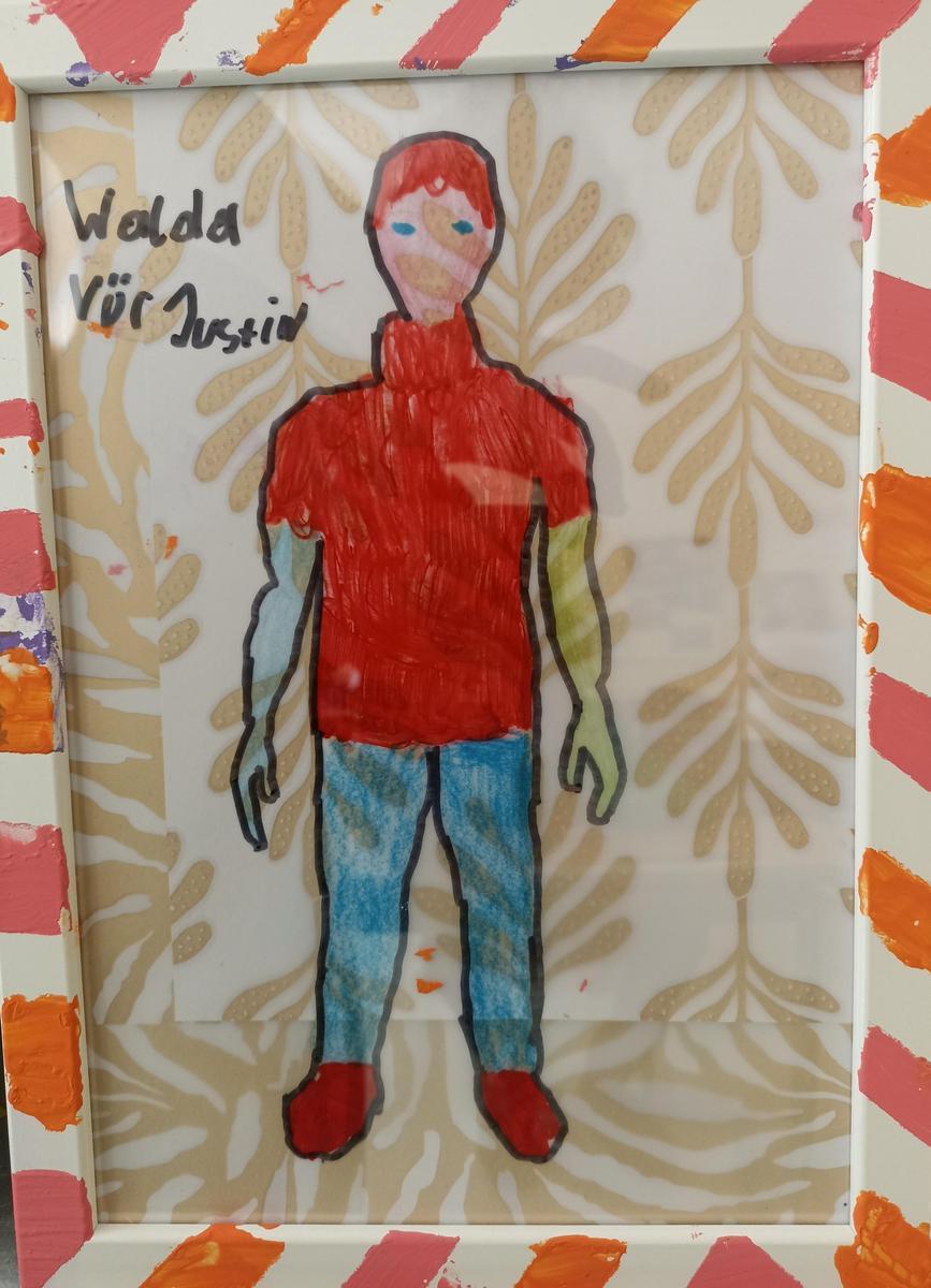 Die Kulturvermittler/innen begannen die Arbeit mit einem Selbst Portrait, in diesem Jahr grafisch im A4 Format auf Transparentpapier. Die Vorlagen wurden von Freund/innen mit Buntstiften farbig weiter bearbeitet. Ein wesentlicher Aspekt dieser Einheit lag darauf, Details, wie Gesicht oder Hände genauer darzustellen, das Arbeiten zu vertiefen und zu konkretisieren.