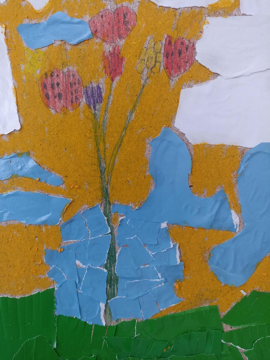 Die nächste Einheit verbrachten die Kinder damit, Mosaike von Pflanzen oder Tieren aus Buntpapier auf Spanplatten herzustellen – die Kinder arbeiteten konzentriert und ausdauernd an ihren Werken und freuten sich über die bunten Ergebnisse.