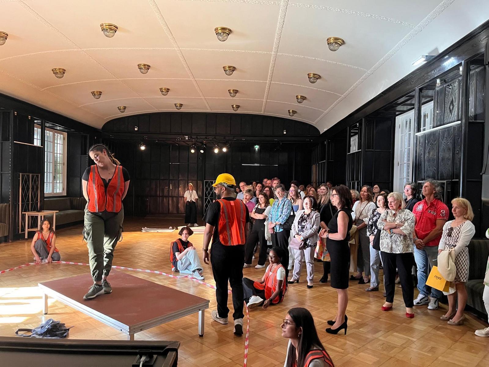 Die Performance UNDER CONSTRUCTION thematisiert, wie eine Baustelle und die Umgestaltung eines Gebäudes Einfluss auf das Leben der Menschen vor Ort hat und wie die Menschen dadurch Orte neu wahrnehmen und erleben. Der Raum kann dabei als einschränkend oder auch als ermöglichend erlebt werden.