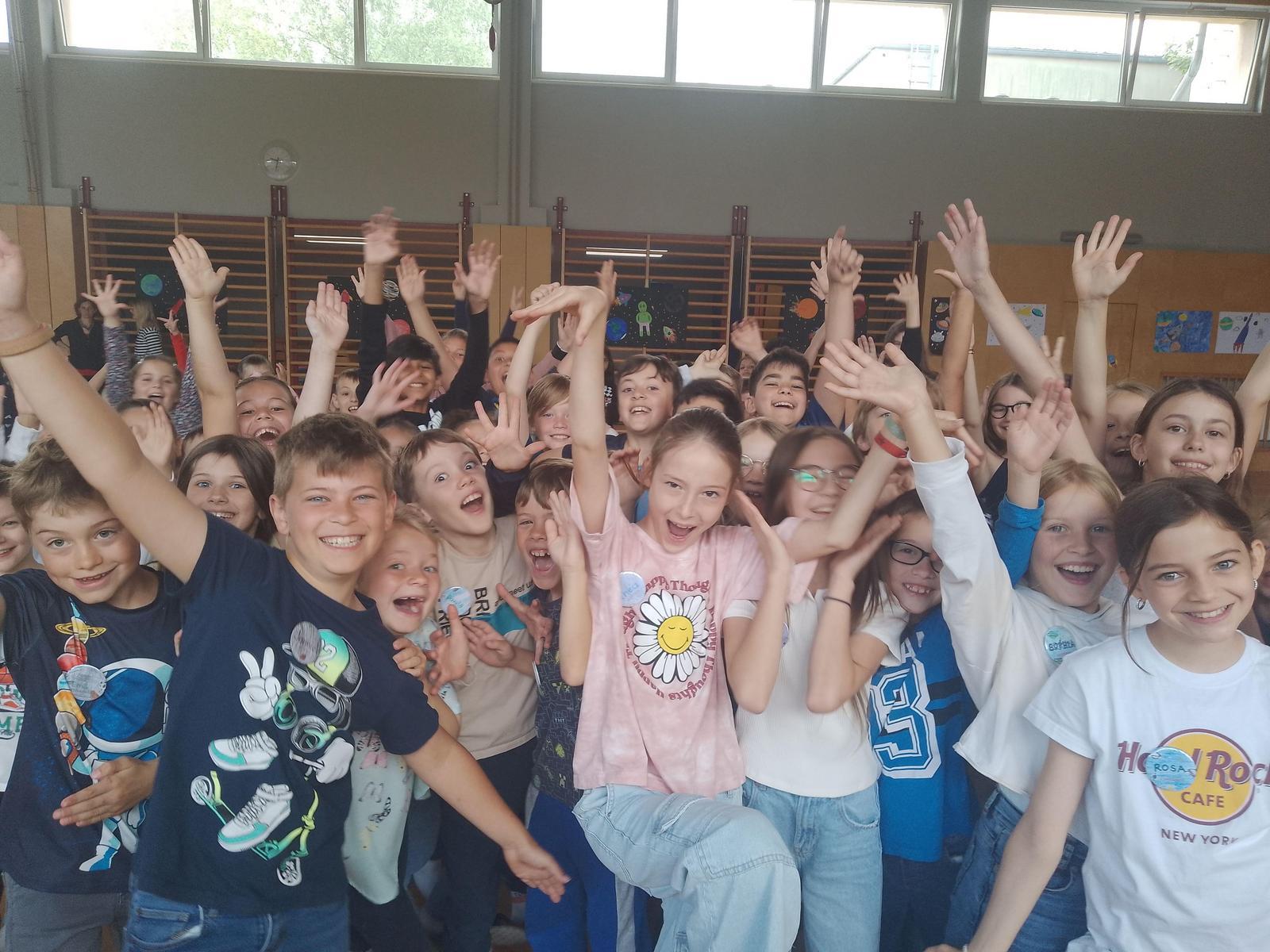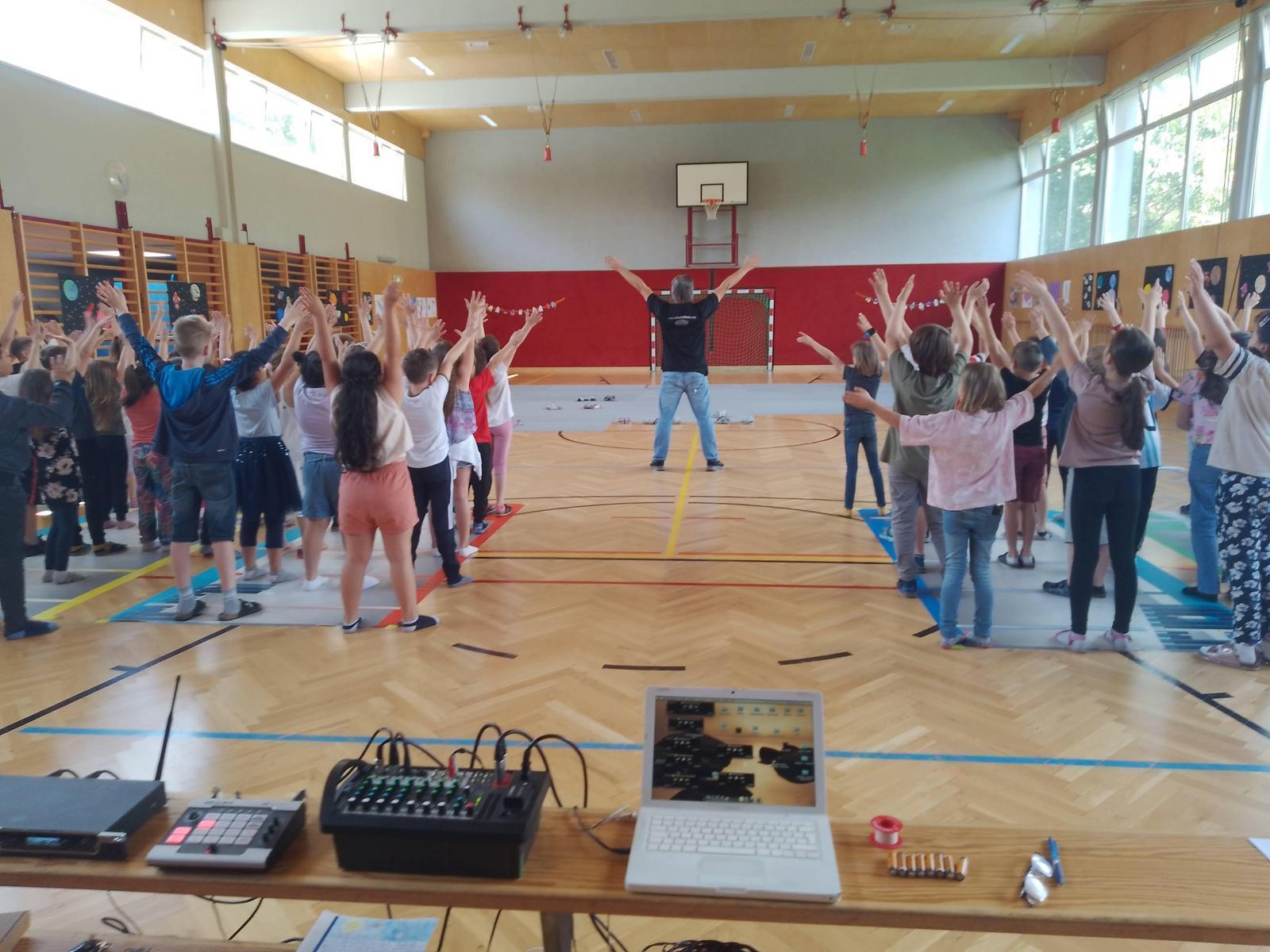 Am Tag vor der Aufführung hatten die Kinder, wie gewünscht aber auch die Möglichkeit gemeinsam das Stück zu erleben. Die Energie der 250 Kinder war für alle zu spüren und zu hören. Für alle war es ein einmaliges Erlebnis.