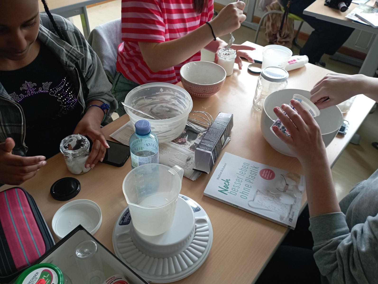 Die Schüler/innen erhielten eine theaterpädagogische Einführung in Thematik "Nachhaltigkeit" und setzten sich damit auseinander. Dabei erschufen sie ihre eigenen Visionen für eine ideale Welt, entwickelten daraus Standbilder und Theaterszenen. Die Jugendlichen erlebten sich selbst wirksam, indem sie selbst die Zutaten für ein nachhaltiges Produkt, wie z. B. Deo, Waschmittel oder Shampoo, aus dem Buch "Noch besser leben ohne Plastik" besorgten und dieses dann selbst herstellten. Den Weg dorthin dokumentierten sie filmisch mit ihrer Handy Kamera. Im Anschluss reflektierten sie ihre Erlebnisse, entwickelten Pro und Contra zum plastikfreien Leben und traten spielerisch in einer Talkshow gegeneinander an.