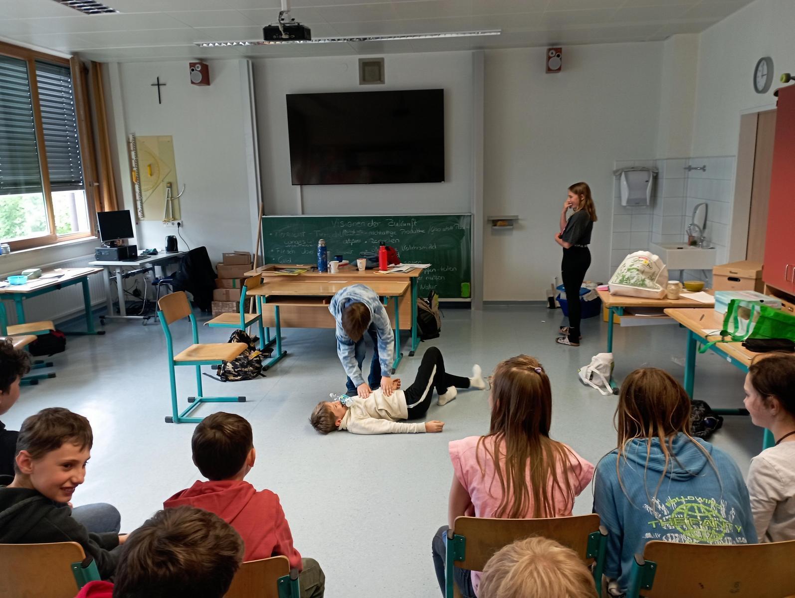 Es entstanden Standbilder und Theaterszenen zum Ist- Zustand und Soll-Zustand einer geschützten Welt. Dabei sind die beiden Theaterpädagoginnen mit den Kindern der Frage nachgegangen, wie man vom IST- zum SOLL-Zustand gelangt. Anschließend stellten sie in Kleingruppen nachhaltige Badezimmerprodukte, wie z. B. Deo, Waschmittel oder Shampoo her. Im Anschluss reflektierten sie ihre Erkenntnisse, entwickelten Pro und Contra zum plastikfreien Leben im Badezimmer und stellten diese szenisch dar. Durch das Feedback der Mitschüler/innen zu den Theaterszenen entstanden am Ende lustige, nachdenkliche und tragische Szenen rund um Nachhaltigkeit.