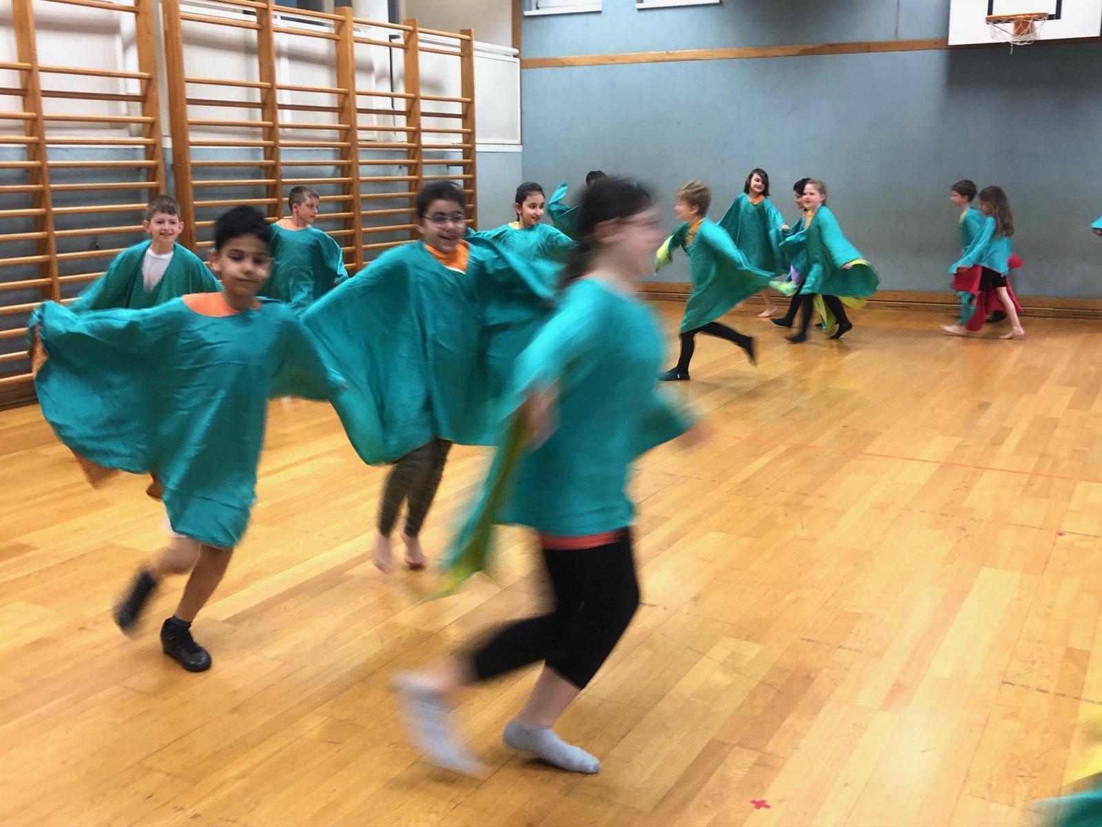 Dem Ideenreichtum der Kinder in den Improvisationen Raum zu geben, war der Pädagogin ein großes Anliegen. Die daraus entstandenen Szenen wurden in der Folge choreografisch umgesetzt und die Kinder hatten große Freude die entstandenen Choreografien bei der Aufführung zu zeigen.