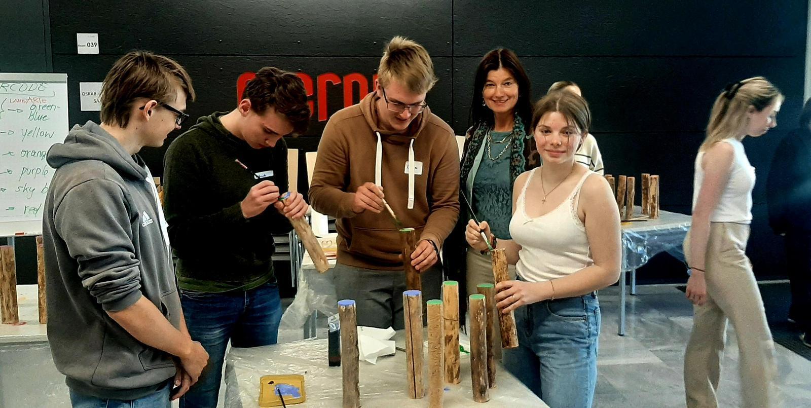 Sehr interessant war schließlich unsere Reflexion. Ein Schüler sagte: "Mir ist jetzt klar, dass ich nicht mehr alles an ChatGPT auslagern darf." Eine Schülerin meinte: "Die KI darf nie intelligenter werden als wir Menschen." Gut fanden die meisten, dass sie 5 Stunden lang nur Englisch gesprochen hatten. Für einige wenige wird in solchen Workshops zu viel geredet; sie wollen lieber leistungsorientiert lernen; emotionale Bildung würde sie vom Wesentlichen abhalten. Die Kreativarbeit hat aber allen Spaß gemacht – und die Installation darf im Schulhof stehen bleiben.