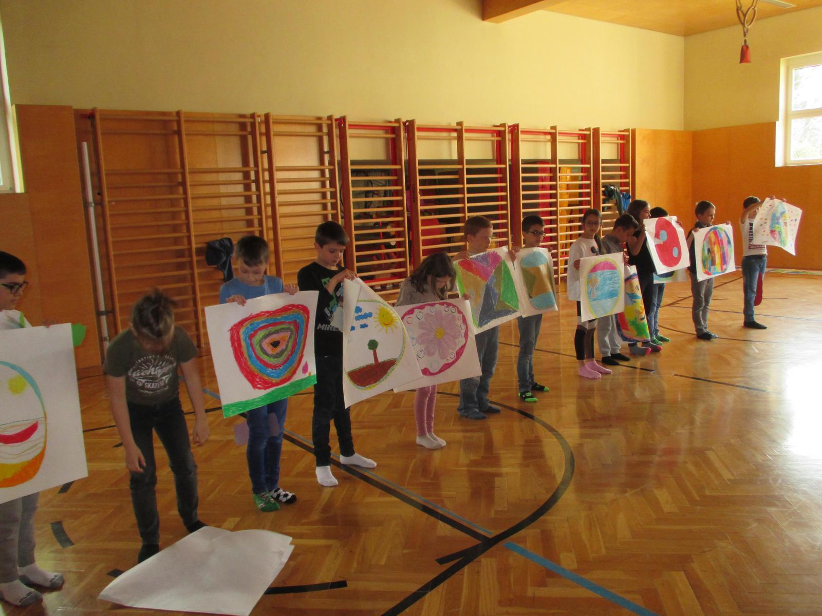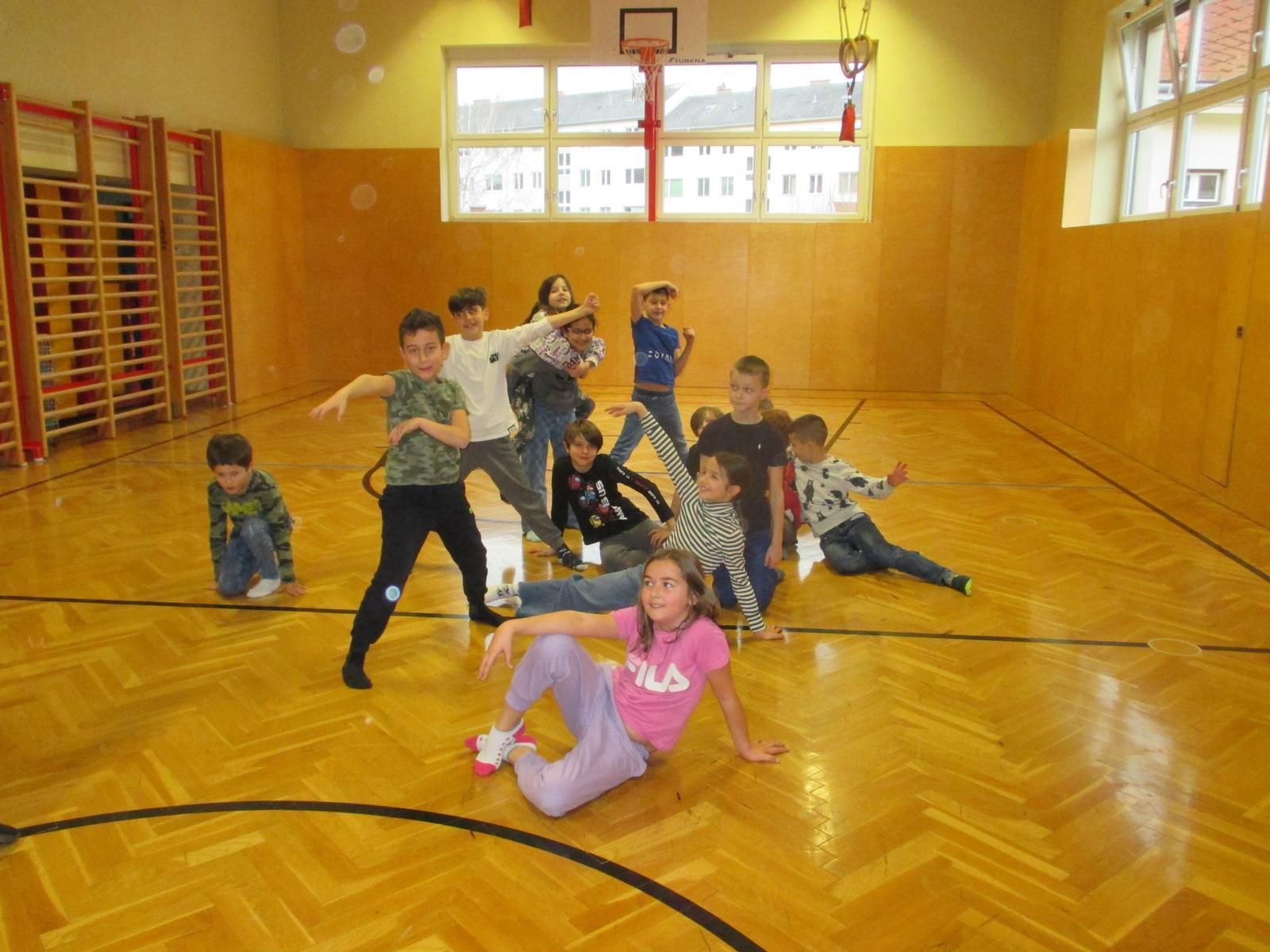 Jede Klasse gestaltete eine eigene Performance, in der die verschiedenen Aspekte des Themas ALLEINE/GEMEINSAM und die damit verbundenen Emotionen in improvisierten Tanz- und Bewegungssequenzen dargestellt wurden. In beiden Bewegungsgestaltungen wurden auch die Gedichte WIR und GEMEINSAM von L. Raubaum und K. Seifert aus dem Buch "Mit Worten will ich dich umarmen" kreativ umgesetzt und als wichtiger Teil in die Performance integriert.
