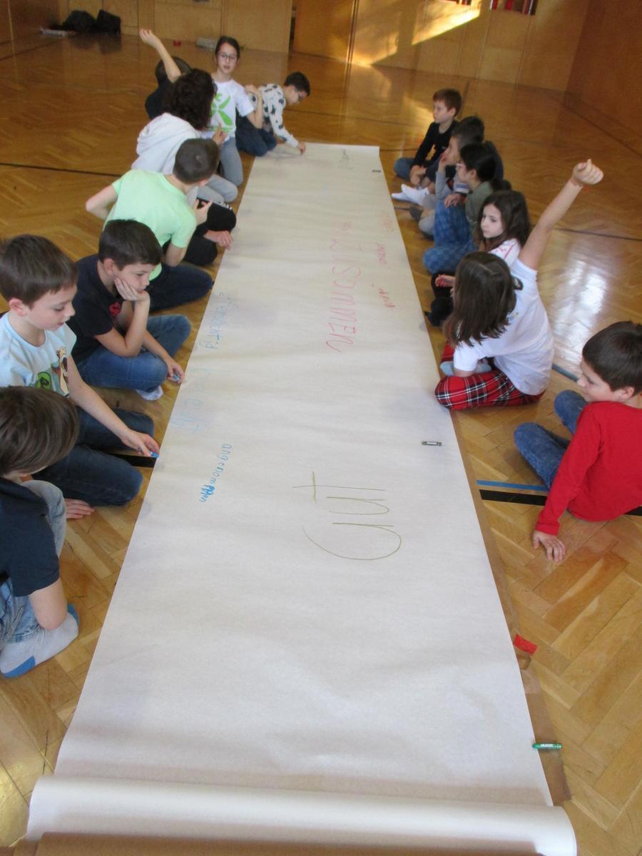 Die Präsentationen der Performances fanden in einer internen Veranstaltung in der Schule statt, an der beide Klassen teilnahmen. Die Konzentration, Kooperation und starke Präsenz der Schuler/innen, sowie eine wertschätzende Atmosphäre waren sehr spürbar und sichtbar.