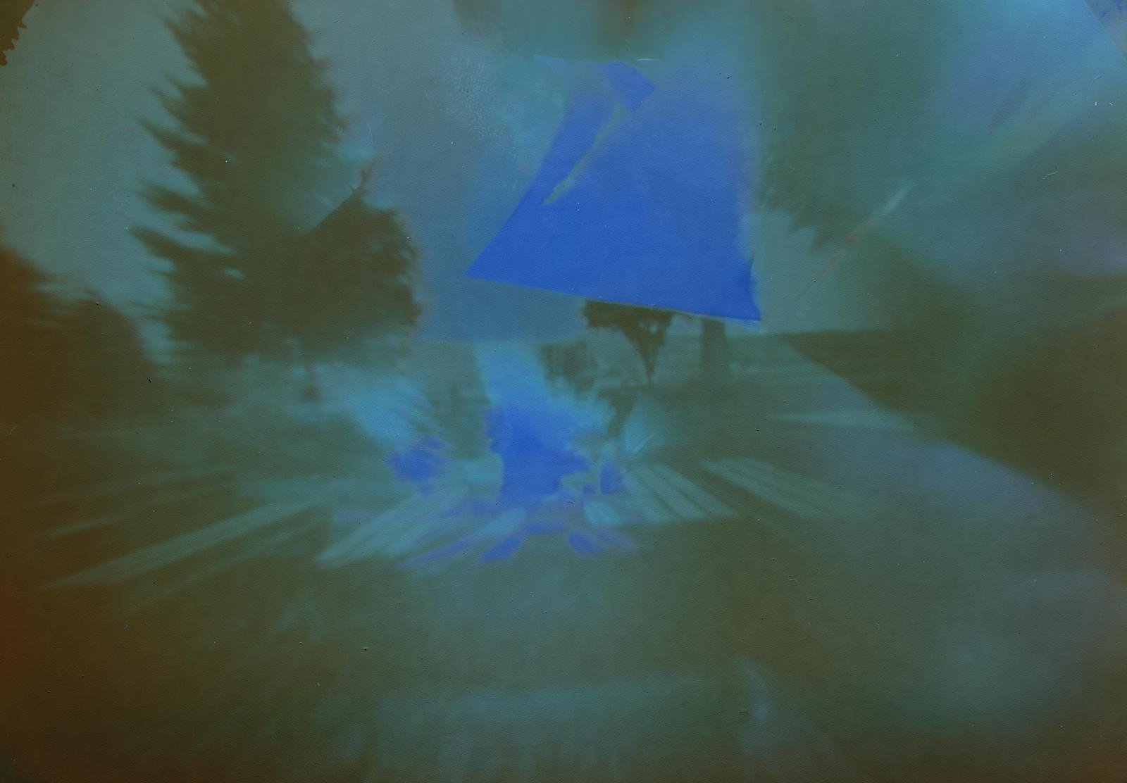 Wir experimentierten mit lichtempfindlichen Material (Cyanotypie) und bauten Lochkameras, die sich die Technik der Solargraphie zunutze machte. Beginnend bei der lichtempfindlichen Schicht bis hin zur lichtbündelnden Kamera als schwarzer Raum wurde somit ein Verständnis geschaffen. Die Kameras montierten wir im Außenbereich der Schule. Jede Schüler*in hatte zusätzlich noch eine Kamera um sie an einem beliebigen Ort im öffentlichen oder privaten Garten zu montieren. Durch eine einmonatige Belichtungszeit der Kameras wurden nur regungslose Objekte sichtbar. Diese Unsichtbarkeit von Menschen und Autos (sich in Bewegung befindendes) wurde anschließend ebenso besprochen. Die entstandenen Arbeiten werden nun im Weiteren mit der Projektleitung des Schulpartners, Anna Part-Tieber, in einer gemeinsamen Ausstellung Form finden werden.