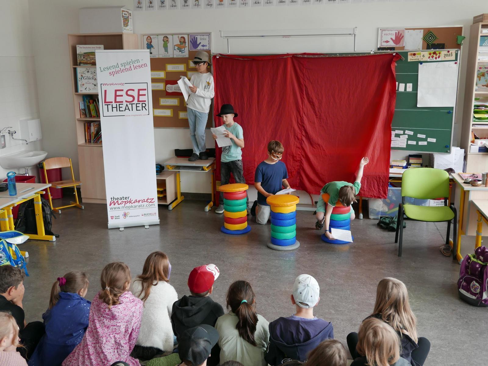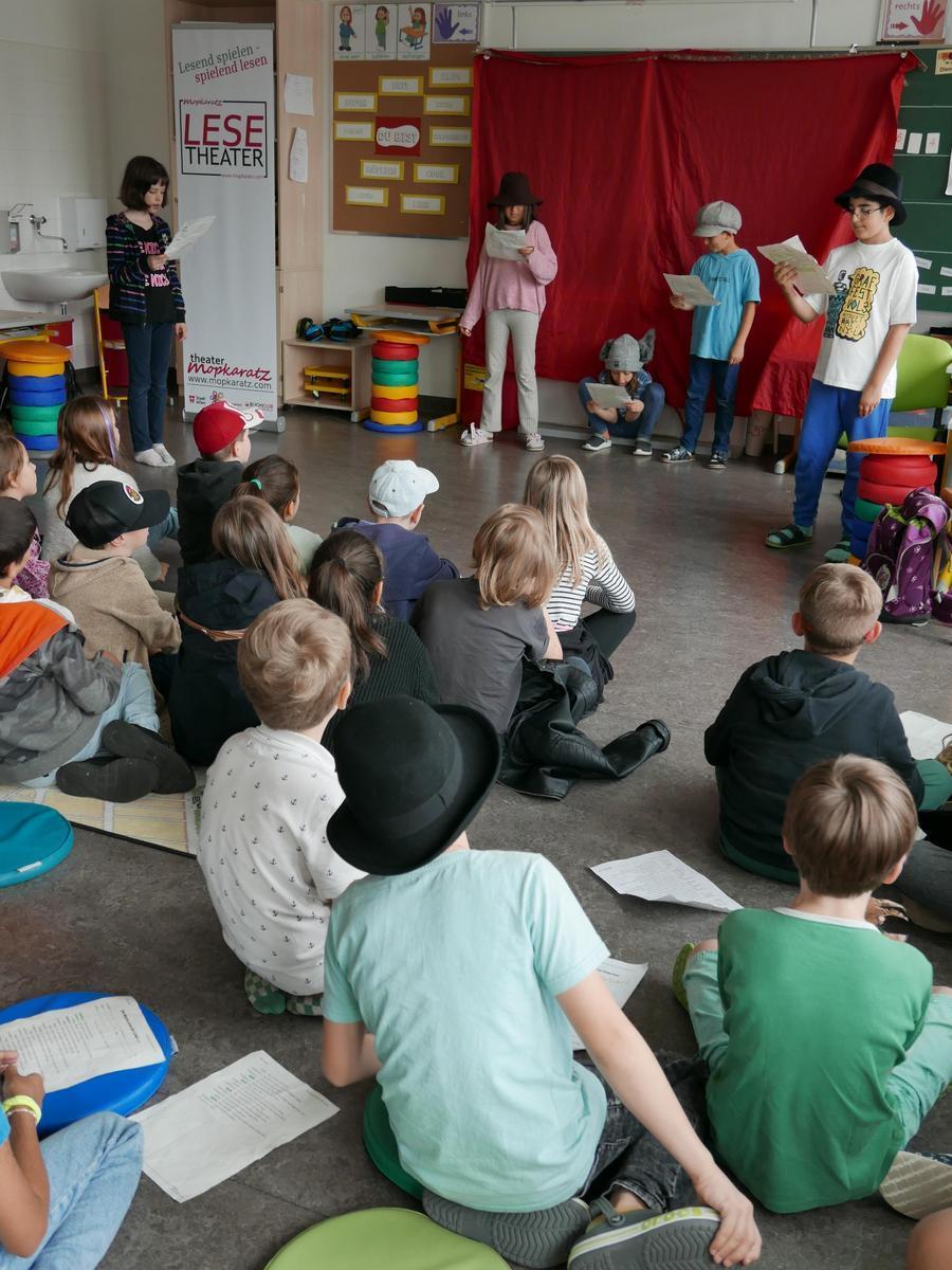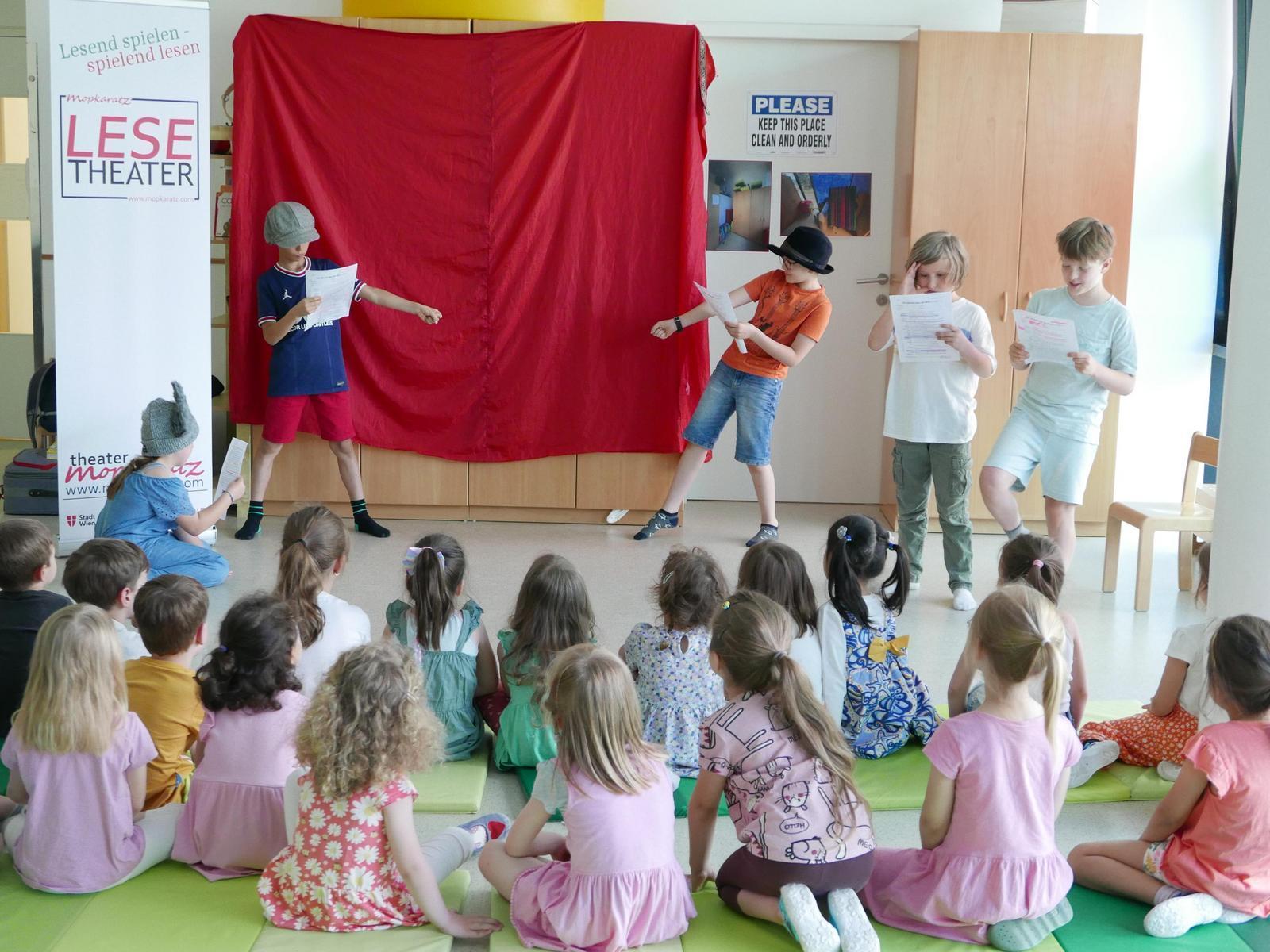 Lesetheater – das sind Texte, die mehrere Kinder als VorleserInnen für ihr Publikum zum Leben erwecken. Lesetheater ist Theater ohne großen Aufwand. Die Kinder gebrauchen ihre Stimme, ihre Mimik und Gestik; jede/r findet für sich die Rolle, die ihr oder ihm und den eigenen Fähigkeiten entspricht. Kinder mit Deutsch als Zweitsprache können damit spielerisch ihre Sprachkompetenz ausbauen.