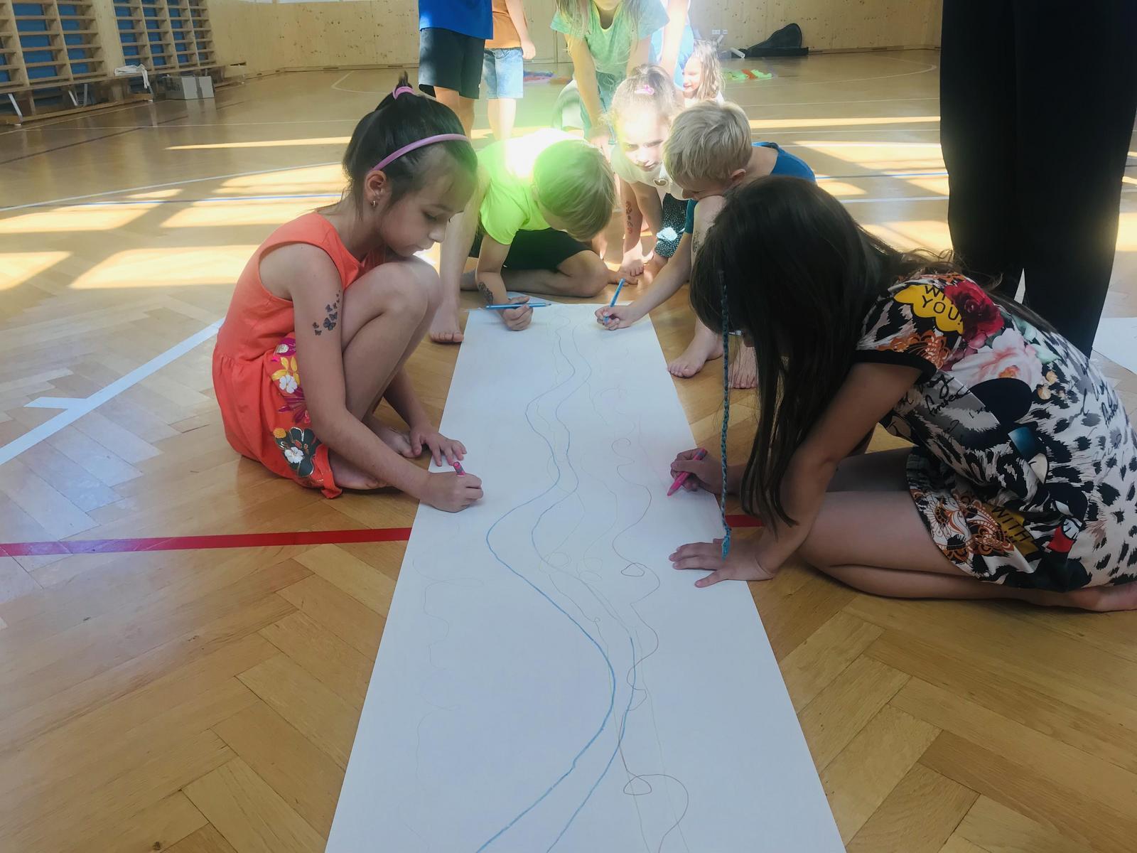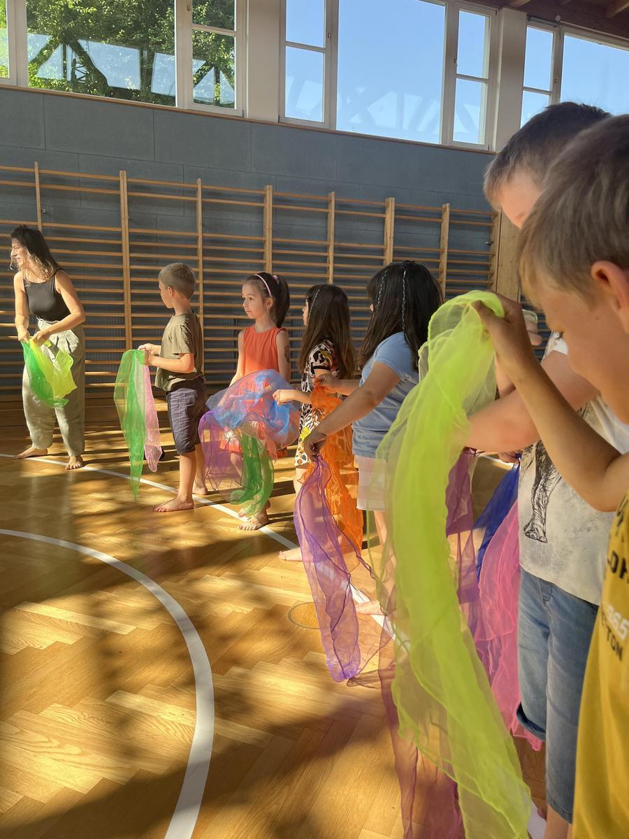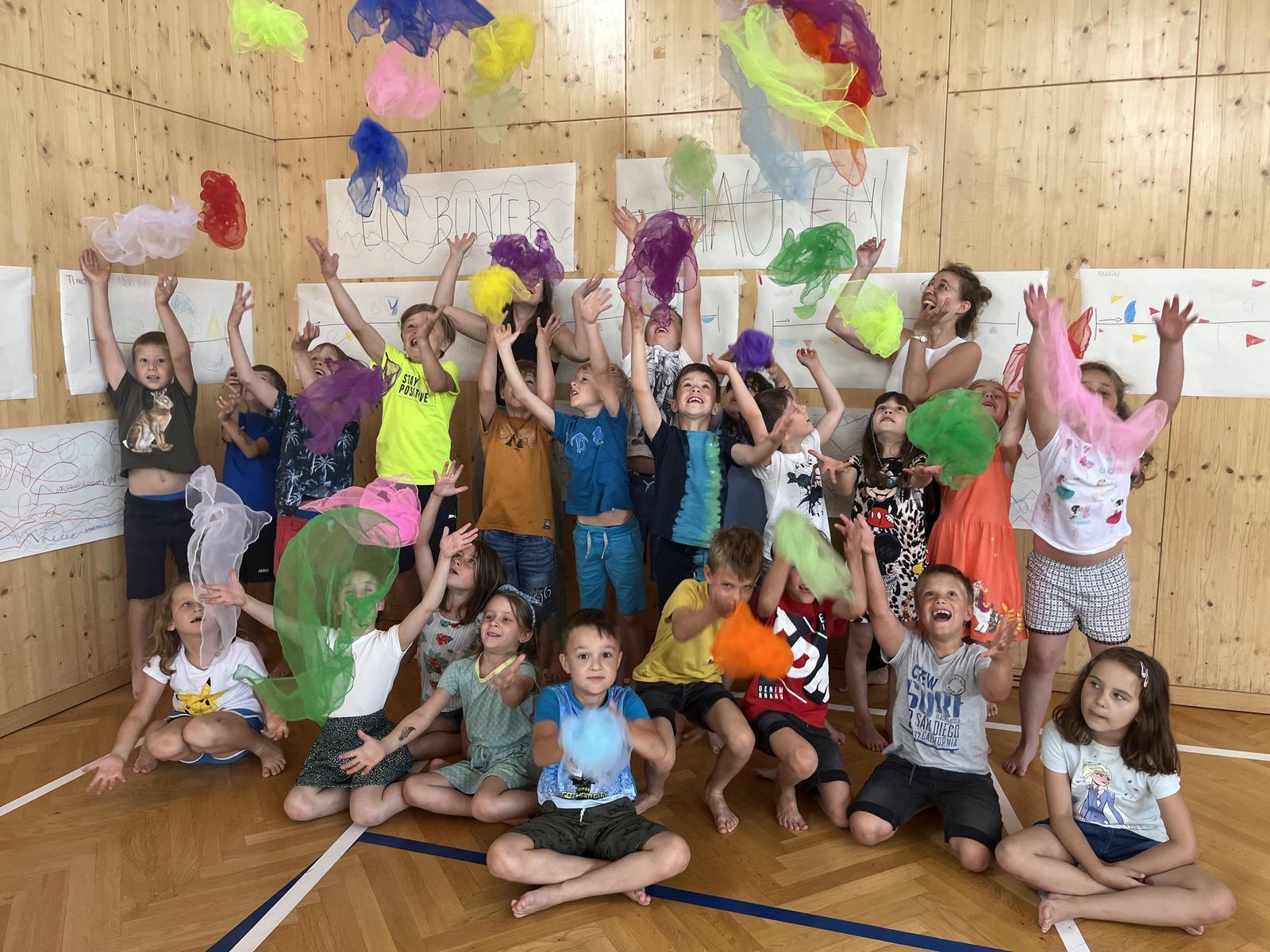 In dieser Workshopreihe wurden gemeinsam bunt durch die Farbpalette unterschiedliche Wirkungen von Farben auf allen Ebenen erforscht. Um Farbvariationen mit allen Sinnen entdecken zu können, wurden die Schülerinnen und Schüler auf spielerische Art und Weise darauf vorbereitet. Am Ende dieser viertägigen Farbentdeckungsreise entwickelte die Gruppe eine gestärkte Farb- und Sinneswahrnehmung im Bezug zur Musik und Bewegung. Die Schüler/innen wurden eingeladen Farben nicht nur zu benennen und Farbstifte zu verwenden, sondern tiefer in die Welt einzelner Farben einzutauchen und deren Wirkung zu ermitteln. Dies erfolgte spartenübergreifend und etwa durch das Erlernen einzelner Lieder in Kombination mit Musizieraktionen, das Komponieren mit eigens gebastelten Instrumenten, das gemeinsame kreative Zeichnen und vieles mehr.