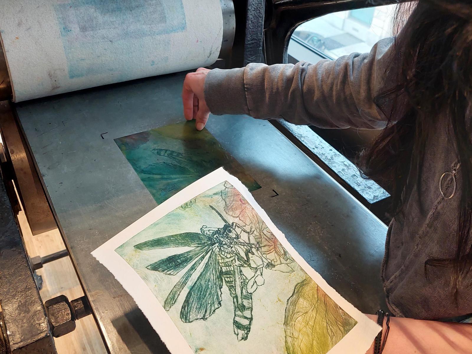 Im April 2023 fanden zwei Druck-Workshops im Atelier der Künstlerhaus Vereinigung statt: die Technik der Kaltnadelradierung wurde vorgestellt und angewendet, die Teilnehmenden experimentierten mit unterschiedlichen Techniken und Materialien.