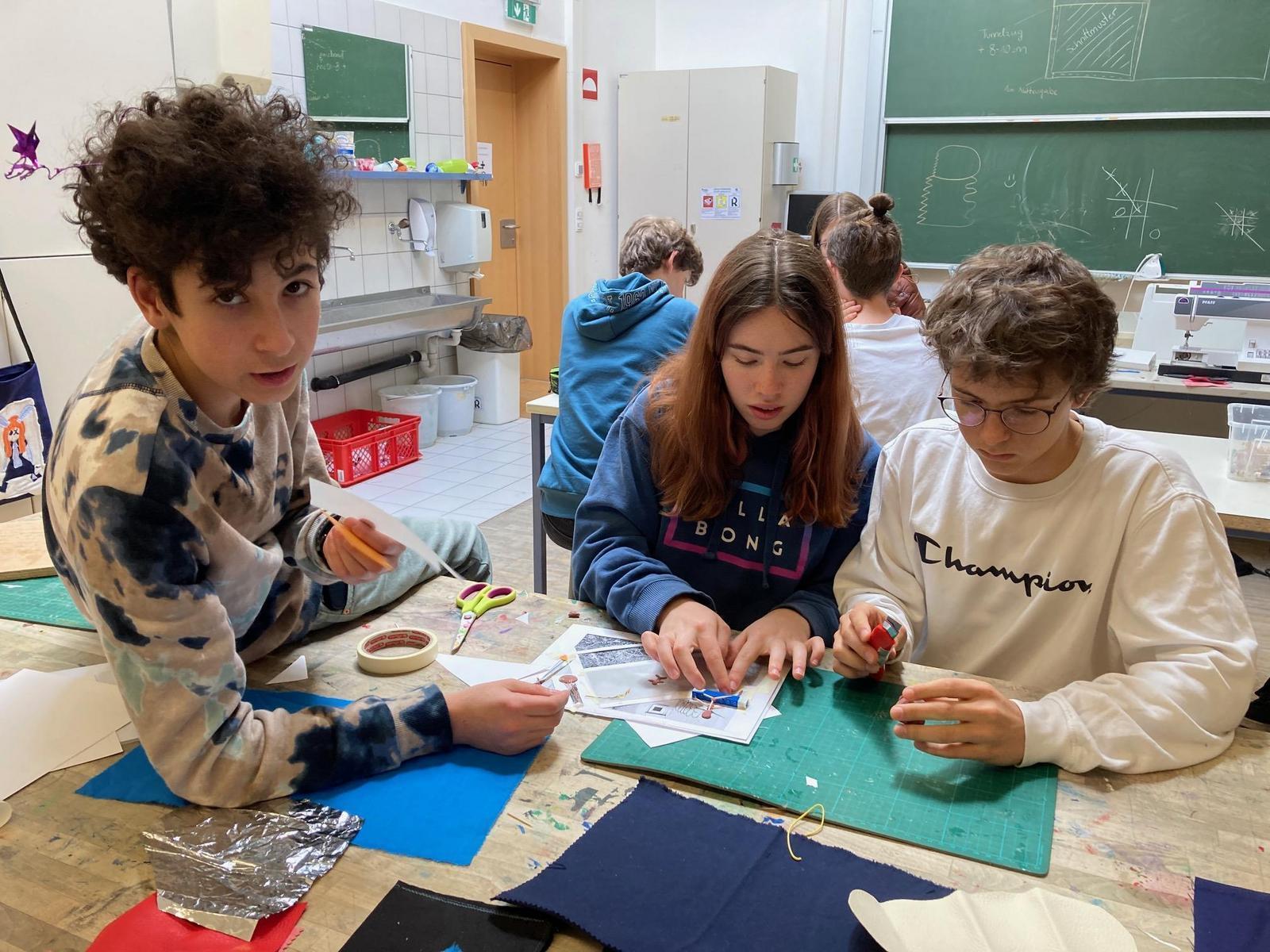 Ausgehend von den Skizzen erarbeiteten wir mit verschiedenen Materialien – Papier, Folien, Draht, Watte, Karton,... – zweidimensionale Raumentwürfe. Wir machten uns mit der Dunkelkammer und den Entwicklungsprozessen vertraut.